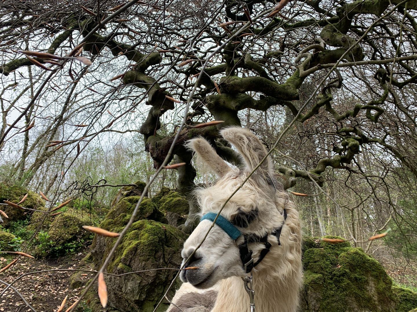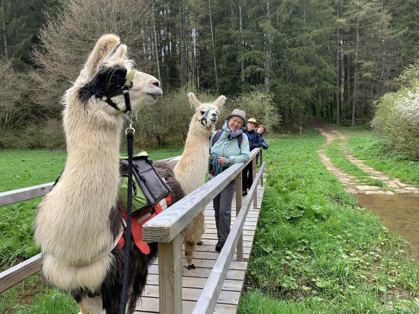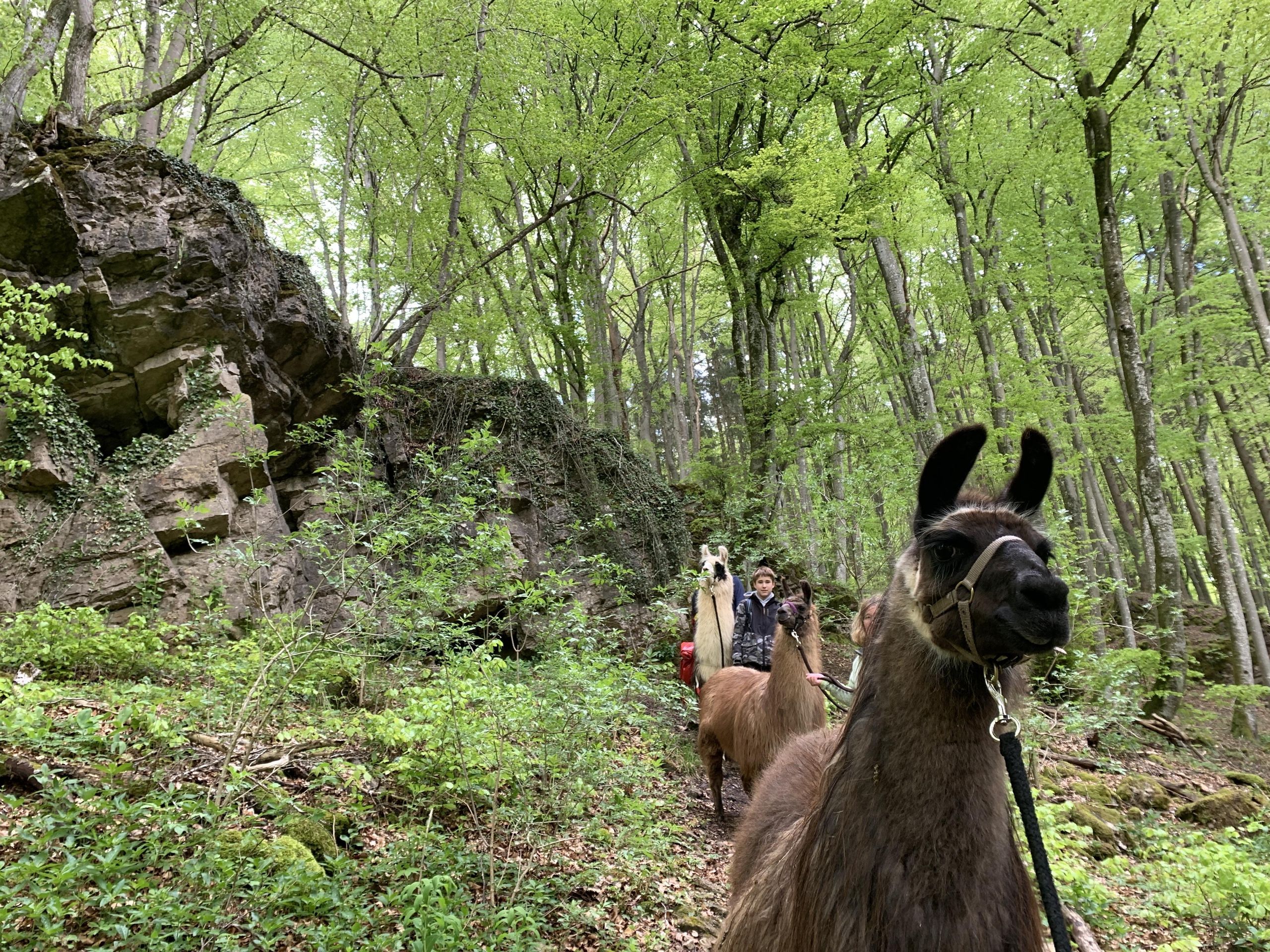 Nous traversons brièvement les champs du plateau "Op Ischt" puis retournons dans les forêts de hêtres. Sur un éperon rocheux escarpé surplombant la vallée du Altburg, se trouve l'ancienne fortification celte. Il est facile d'imaginer pourquoi les Celtes choisirent cet endroit isolé comme refuge. En suivant le Altburgbach, nous rejoignons notre point de départ après environ sept heures. À notre arrivée, nous devons dire au revoir à nos fidèles compagnons, les lamas.