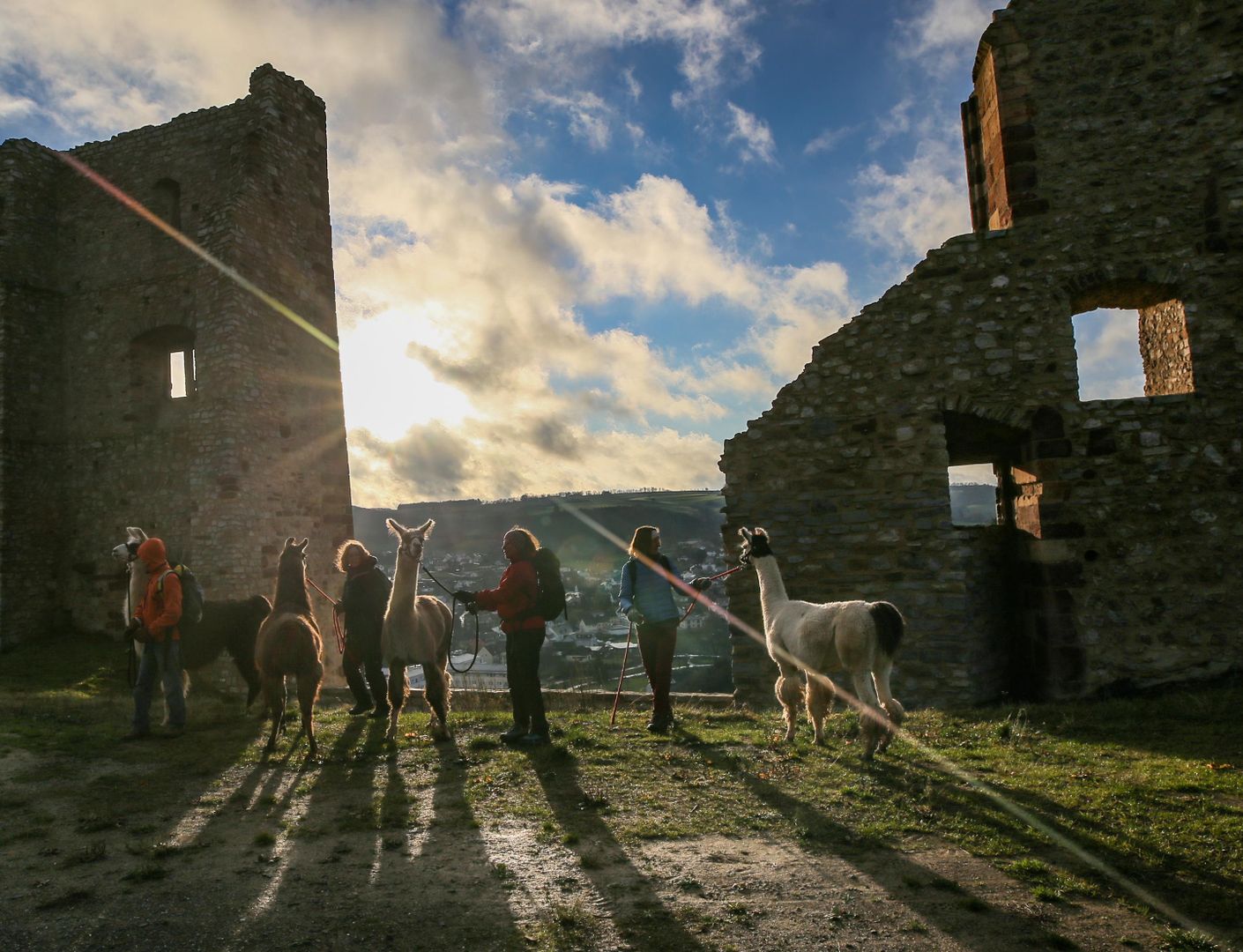 Votre tour commence et se termine juste en dessous des ruines du château de Schönecken, sur le pâturage des eifelnomaden. Après une introduction divertissante, au cours de laquelle vous apprendrez à connaître les lamas et découvrirez comment les mener, vous partirez avec votre guide pour votre randonnée dans la réserve naturelle.