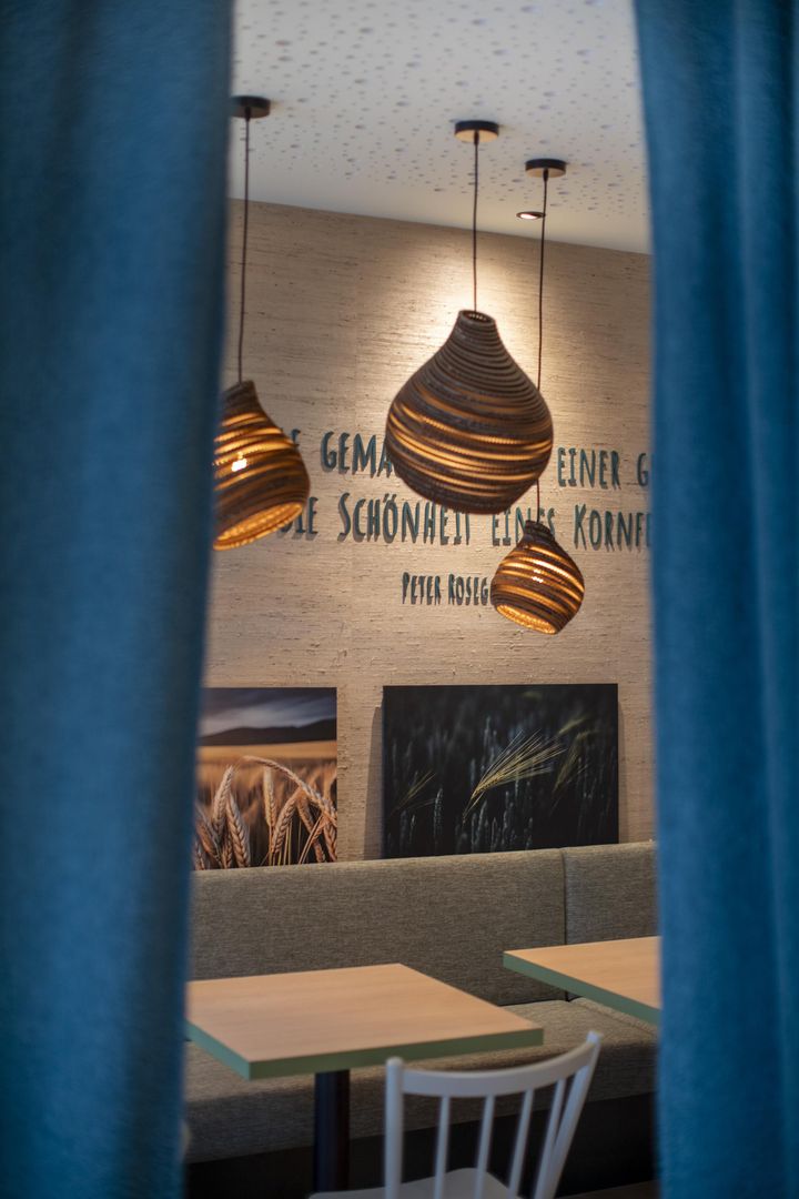 Nous proposons ici tout l'assortiment de notre boulangerie bio dans la moitié de la boulangerie, et vendons aussi volontiers des gâteaux à emporter. Dans le café, vous pouvez vous asseoir pour le petit-déjeuner, un petit déjeuner ou un café et des gâteaux, ou pour terminer la journée en beauté, et rencontrer des amis et des connaissances. Dans tous les domaines, nous proposons dans la mesure du possible des produits régionaux et/ou bio. Même notre café est issu de l'agriculture biologique équitable. Les amis et amies de l'art de la pâtisserie végétalienne ne sont pas en reste chez nous, nous proposons toujours des tartelettes végétaliennes. Et bien sûr, toutes les spécialités de café sont à base de boisson à l'avoine.