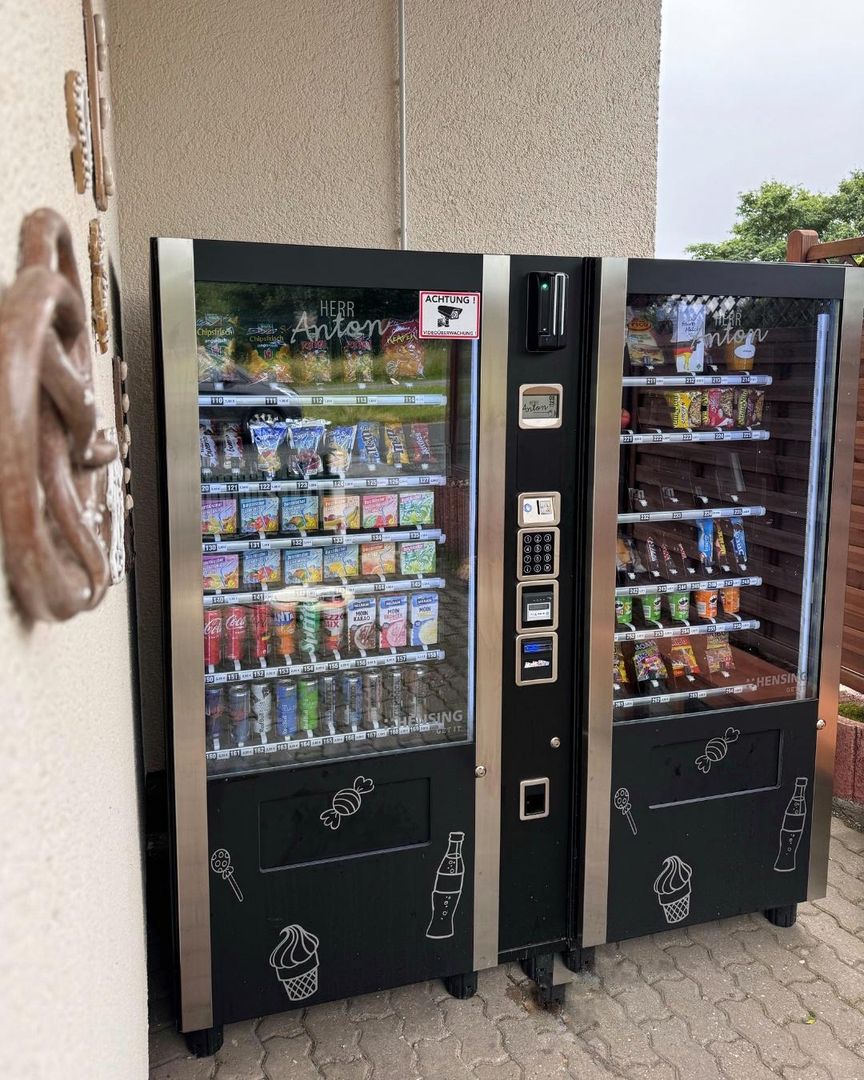 Le distributeur de snacks devant la petite maison croustillante est ouvert jour et nuit et propose des boissons fraîches, des snacks, des œufs et des pommes de terre de la région, etc.