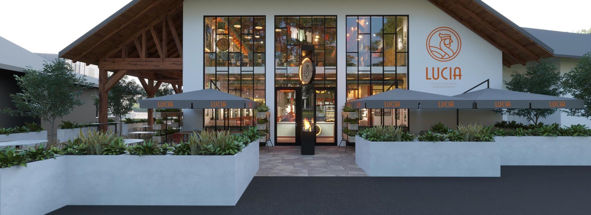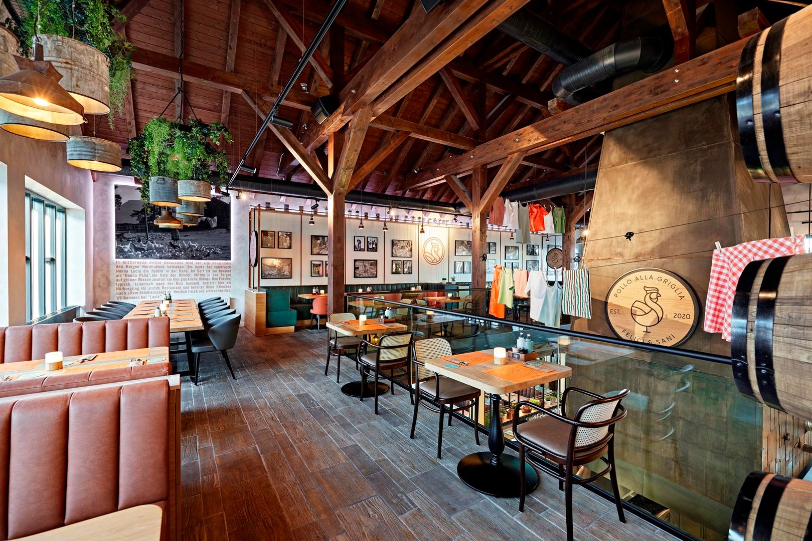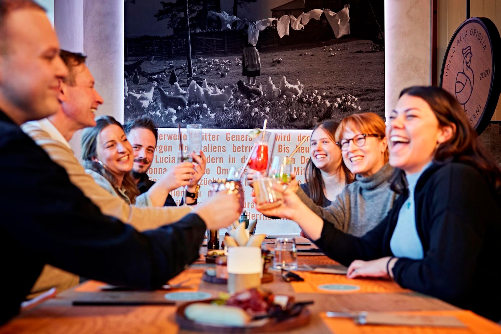 Nous vous emmenons en voyage en Italie. Laissez-vous emporter le temps d'une soirée à la ferme de LUCIA. Vous y ressentirez la chaleur du soleil, le confort rustique de la cour, la vie conviviale avec les amis et la famille autour de grandes tables rondes et le romantisme à deux, lorsque vous vous blottirez à l'une des petites tables cachées sur le balcon.