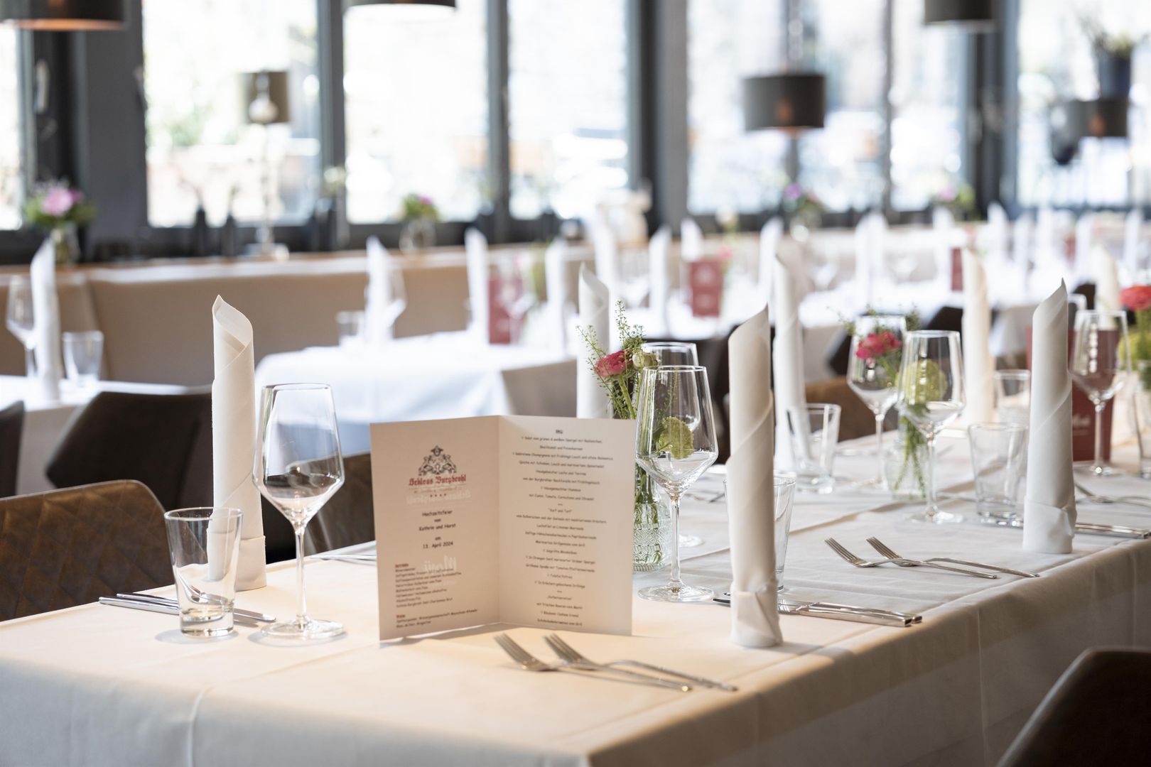 Rustique, mais néanmoins élégant, le château Schenke offre une atmosphère chaleureuse et accueillante. Détendez-vous dans l'ambiance unique du château en savourant une bière bien fraîche ou un verre de vin. Goûtez à des délices saisonniers soigneusement sélectionnés. Installez-vous confortablement avec votre famille, vos amis et vos collègues pour célébrer ensemble : le château Schenke est l'endroit idéal pour cela !