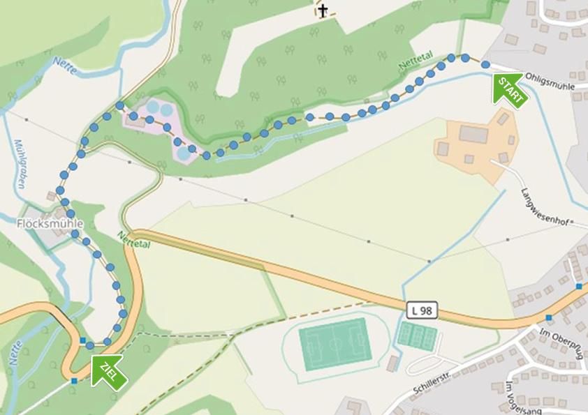 Le point de départ se trouve un peu au-dessus de la Waldklassenzimmer : il faut prendre la route Auf'm Zisselborn jusqu'au bout, puis tourner à gauche sur le Mohlenweg jusqu'au bout. Après environ 70 m sur un chemin non goudronné, il y a une aire de retournement (non goudronnée) où l'on peut se garer. Des places de parking alternatives se trouvent au centre du village, sur la Raiffeisenplatz. De là, on peut suivre le circuit du village jusqu'au point de départ.