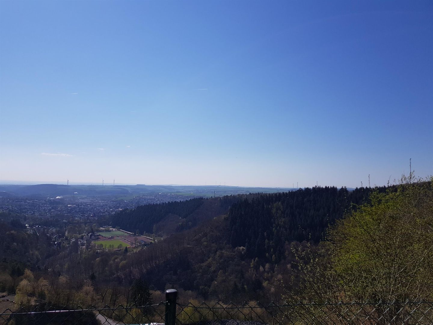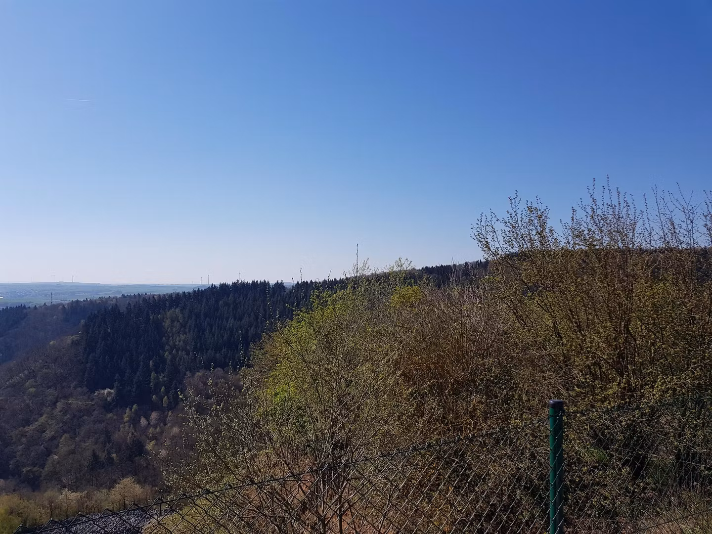 La plate-forme d’observation « Am Johannesknecht » sur la Kreisstraße 21, juste avant l’entrée de St. Johann, offre une vue imprenable sur la vallée nette et Mayen jusqu’à Maifeld.