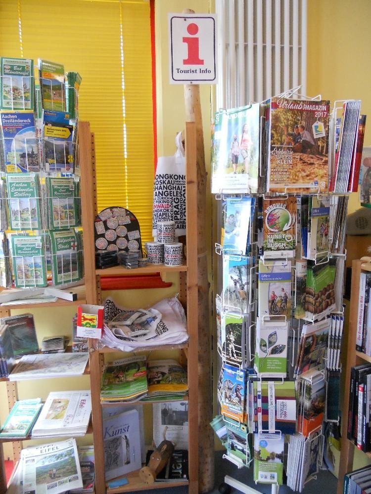 ….le point d'info touristique : cartes de randonnées, conseils d'excursions, informations - en bref : nous vous proposons tout ce dont vous avez besoin pour agrémenter votre séjour. Sans oublier les livres sur l'histoire de notre village, des souvenirs et des cartes postales d'Hürtgenwald et de Vossenack.