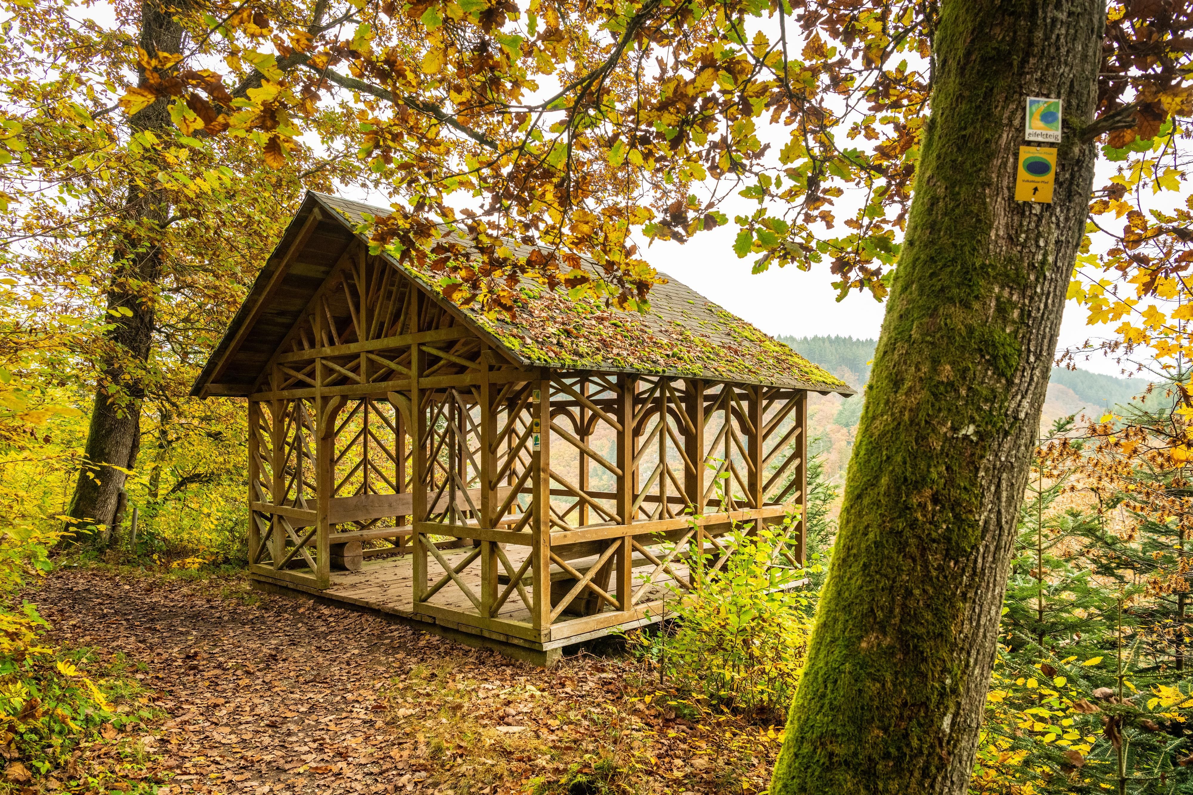 De là, on a une vue fantastique sur les châteaux situés dans la vallée de la Lieser. La cabane ouverte a été construite par l'ancienne "Verschönerungsverein" et reconstruite en 1995 selon l'ancien modèle. Autrefois, des concerts de cure y étaient même organisés. Aujourd'hui, c'est un endroit magnifique pour faire une pause lors d'une randonnée autour de Manderscheid.
