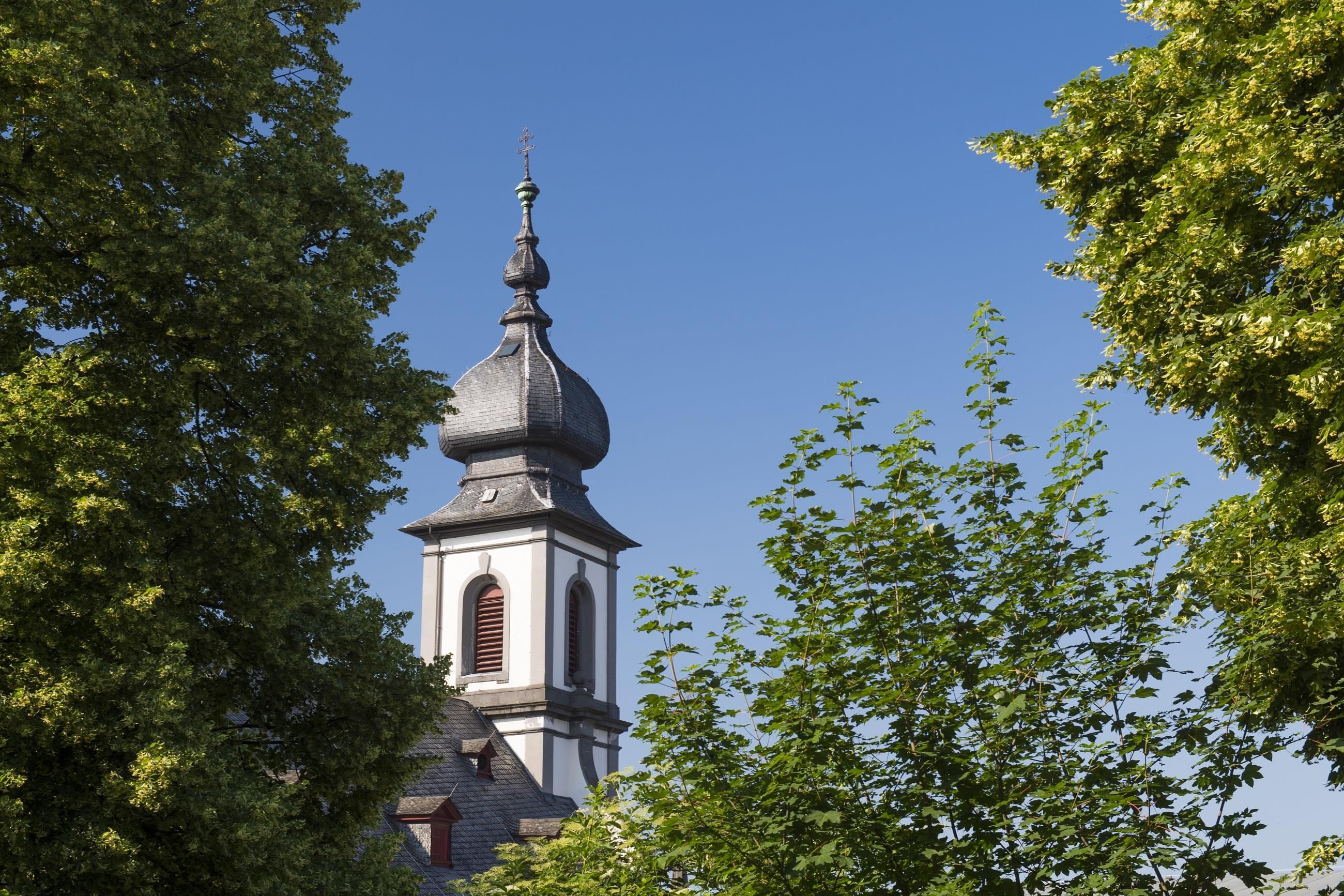 La seule église du diocèse de Trèves placée sous le patronage de Sainte-Cécile a été conçue dans le style baroque classique de la Franconie du Main par le célèbre Balthasar Neumann. Le commanditaire était le comte Karl Kasper von der Leyen, domicilié à Saffig. Elle fut achevée en 1742. L'intérieur de l'église abrite de somptueuses sculptures et des équipements de l'époque. Les fonts baptismaux en lave basaltique locale portent à leur base la date de 1703 et proviennent de l'église précédente.