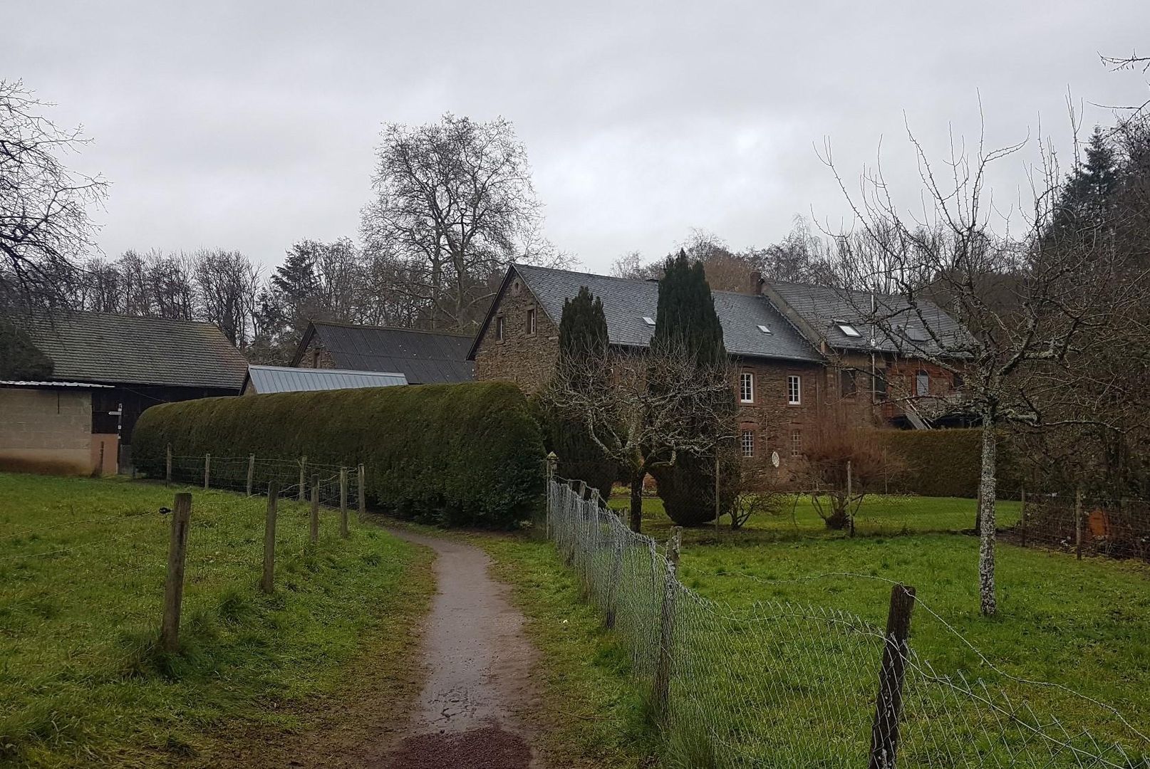 Le noyau du moulin est constitué du bâtiment du moulin construit au XVIIIe siècle, en moellons d'ardoise non crépis. Les encadrements des fenêtres et des portes sont en grès. Le petit fournil est également conservé. En face se trouvent des bâtiments d'exploitation plus fortement modifiés et l'ancienne grange à tabac datant de 1881. L'ancien ruisseau du moulin passait perpendiculairement à l'axe du bâtiment.