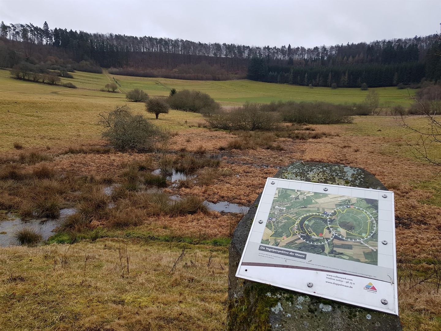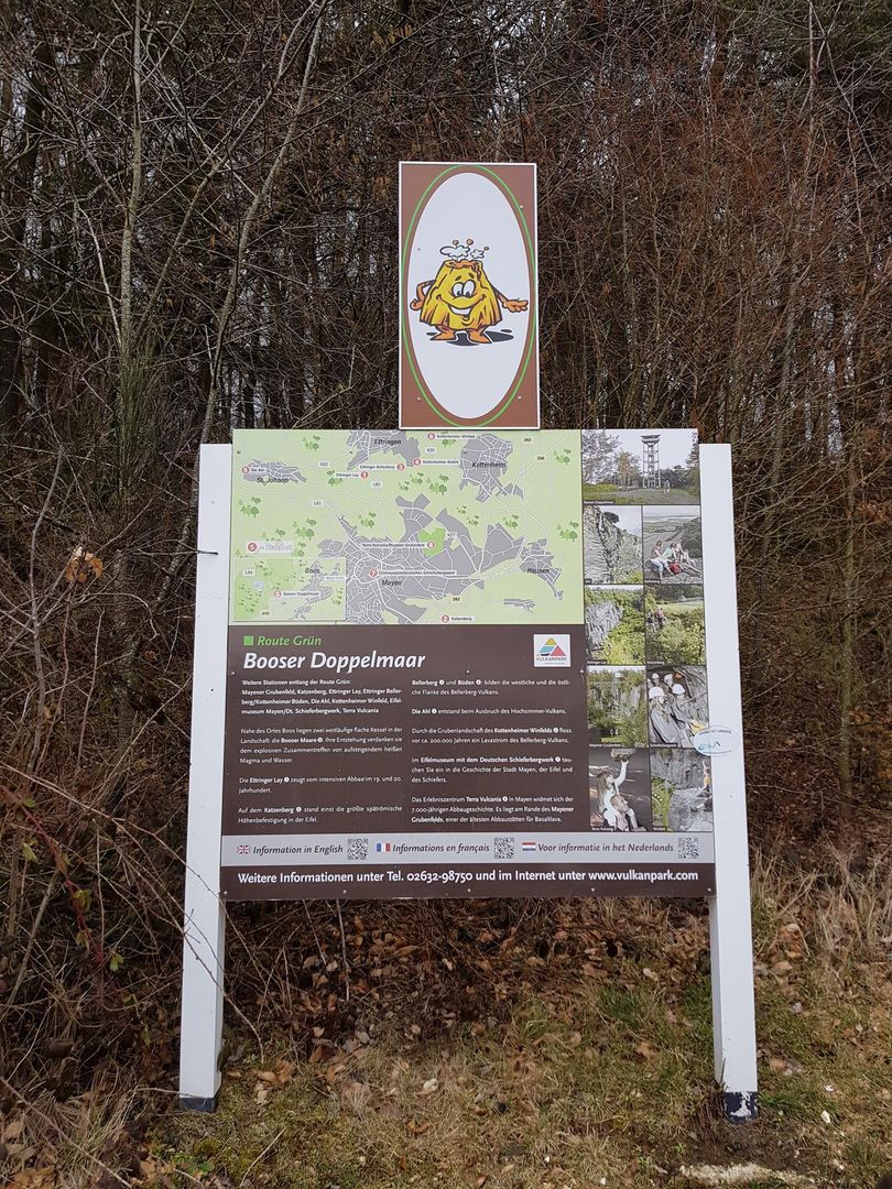 À la station du parc du volcan "Booser Doppelmaar", à l'ouest de la communauté locale Boos, il y a deux vastes bassins peu profonds dans le paysage, l'un est un maar sec, l'autre est maintenant un étang.
