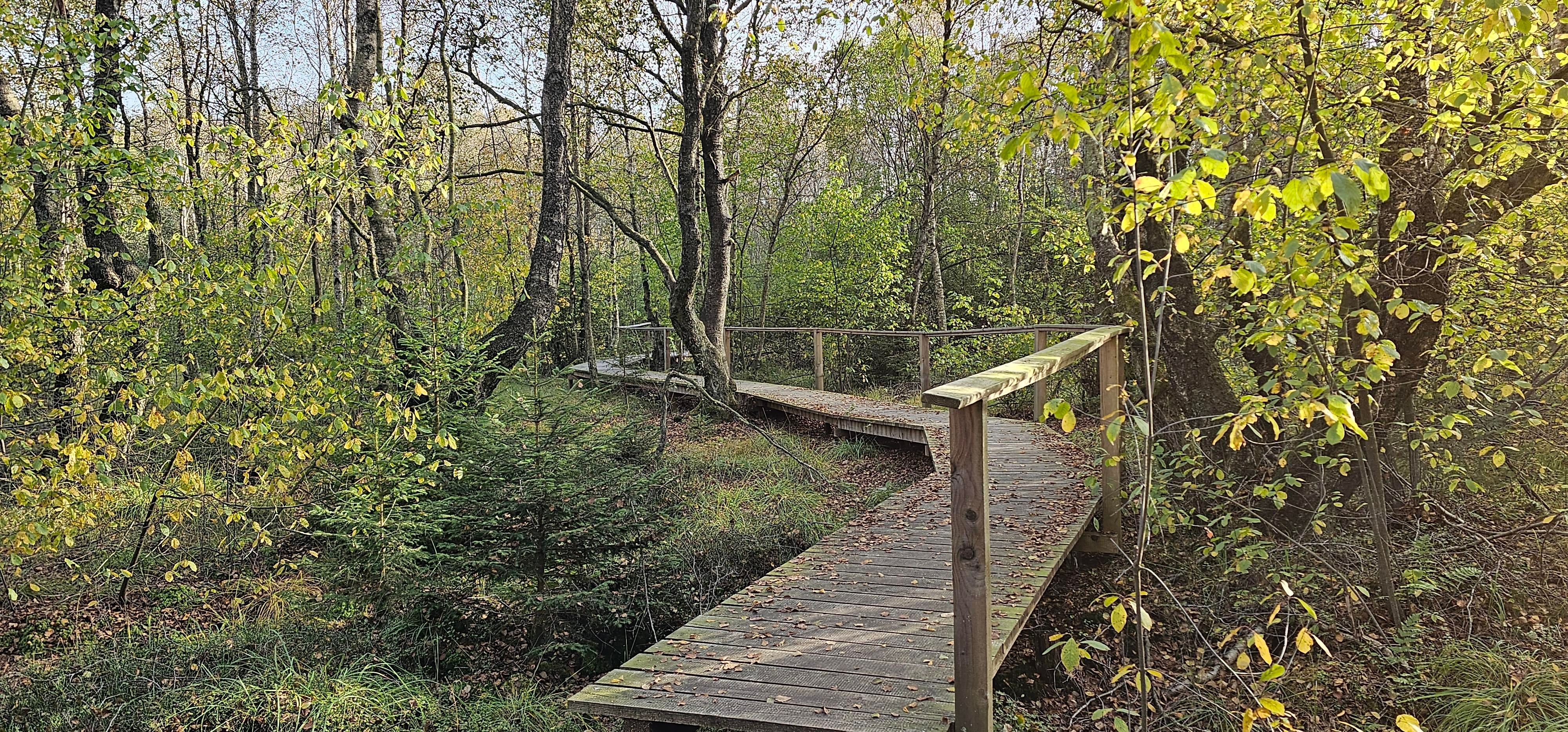 La tourbière et les prairies qui l'entourent sont déjà une expérience en soi, mais le petit bois qui se trouve au milieu de la tourbière est un enchantement tout à fait particulier et inhabituel : Il s'agit d'un peuplement de bouleaux des Carpates qui, au cours de leur vie, changent non seulement de couleur, mais forment également des troncs étrangement tortueux.