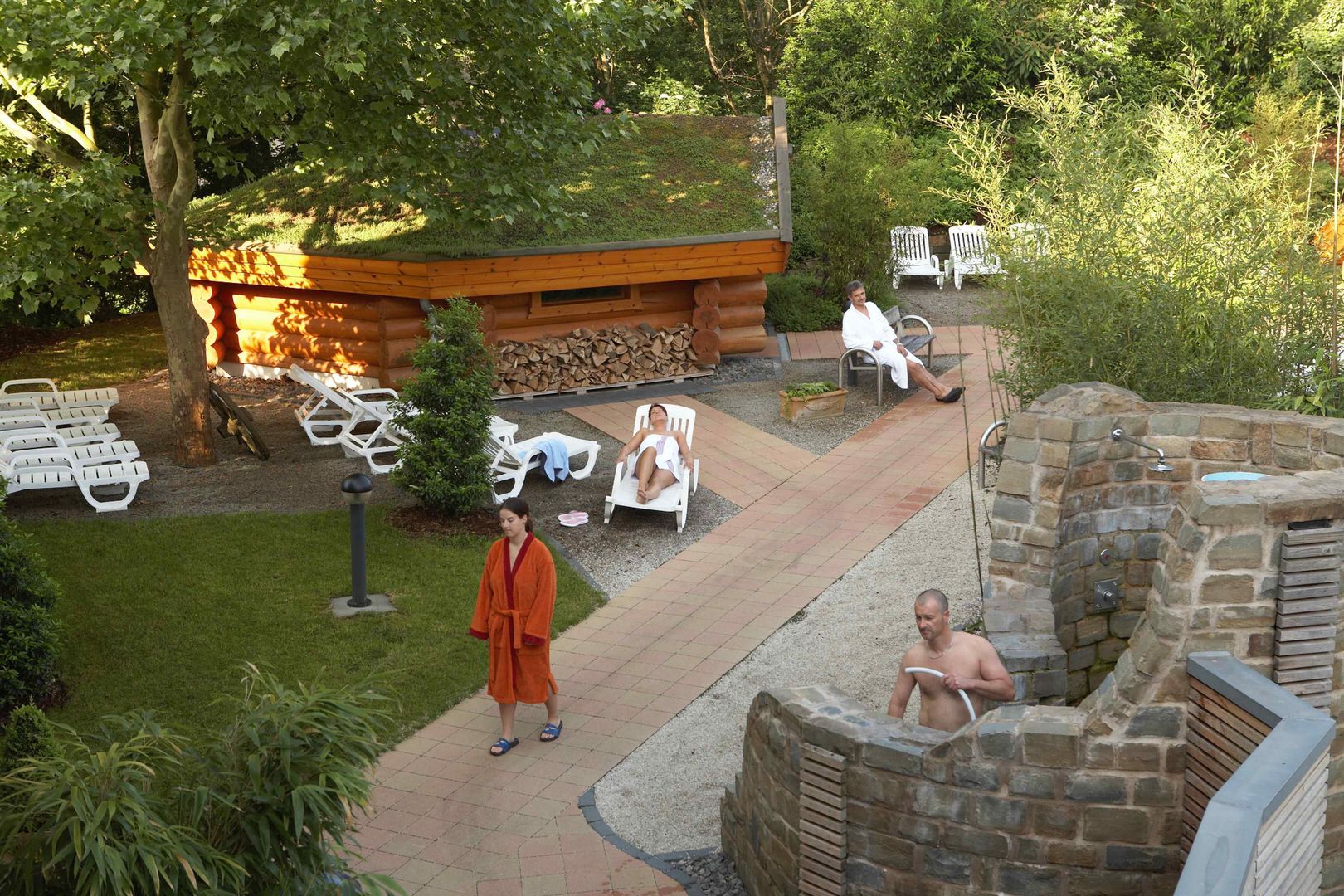 Santé & bien-être dans notre monde du sauna 4 étoiles avec deux saunas romains, un bain de vapeur turc ainsi que trois saunas finlandais à températures différentes (75°C, 85°C au sauna de pierres nobles et 95°C). Le jardin du sauna avec le sauna de terre (110°-120°C) et le sauna de feu (100°C) vous comblera. Pour la phase de rafraîchissement et de repos plusieurs douches aux parfums variés, des bassins d’eau froide à l’intérieur et à l’extérieur et un bassin d’eau chaude de repos et une zone de repos avec un coin lecture sont à la disposition des clients du sauna. Faites-vous plaisir lors de votre visite au sauna avec un de nos nombreux massages bienfaisants et bronzez dans un des nombreux solariums.