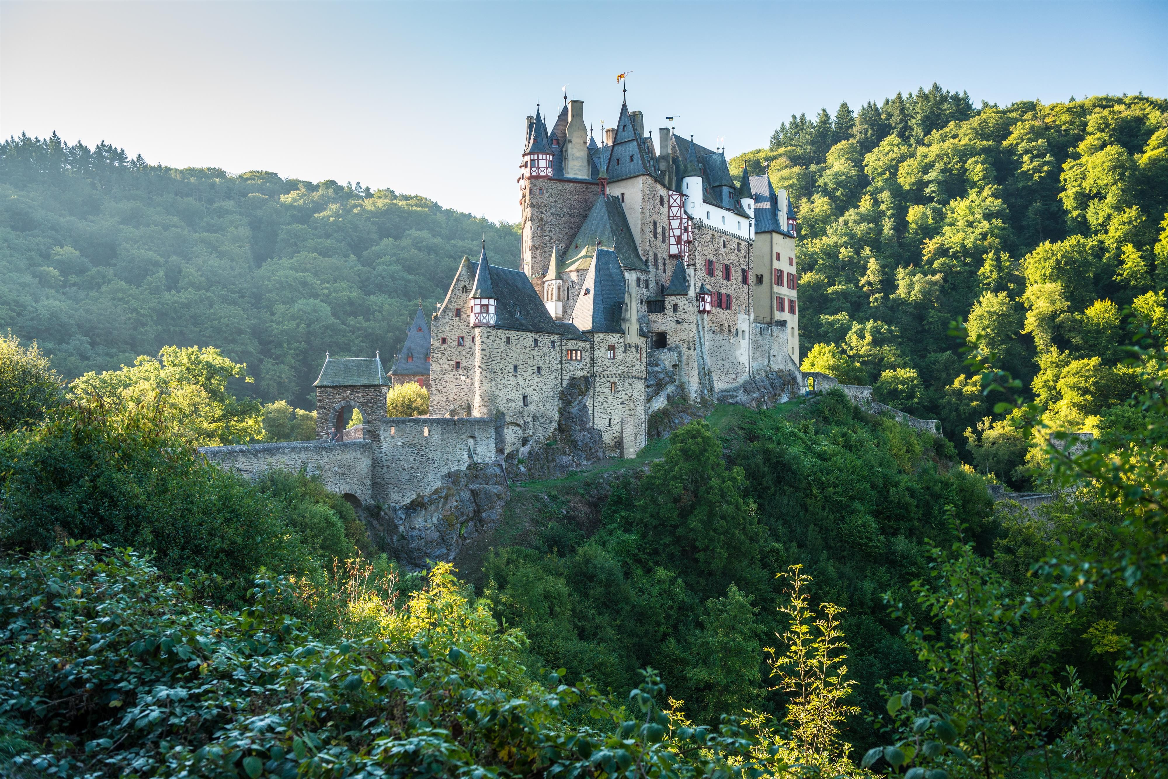 Il se trouve au milieu de la forêt sur un éperon rocheux - imposant, gracieux et intact : le château haut-médiéval d'Eltz du 12ème siècle. De hautes tours, des oriels pittoresques aux toits pointus, des murs de protection et les profondes douves du château étonnent le visiteur dès la vue extérieure, lorsque le château apparaît comme venu de nulle part sur l'un des fantastiques sentiers de randonnée. Construit sur un rocher, qui façonne le plan et l'architecture du complexe. Il trône dans une vallée latérale de la Moselle, près de Mayen.