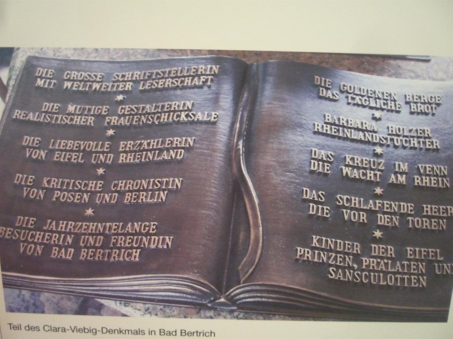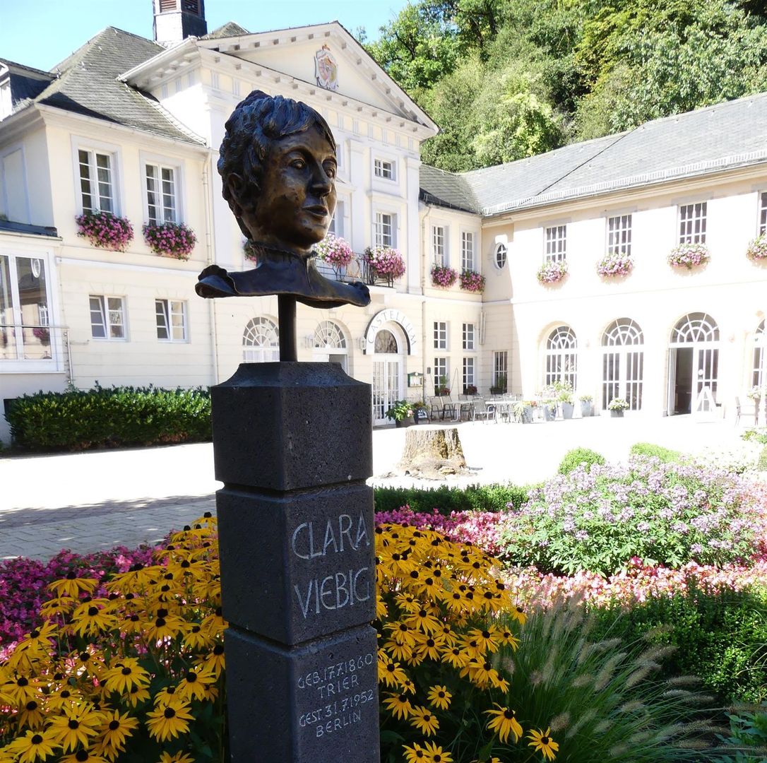 Clara-Viebig-Pavillon Kurfürstenstr. 21, Bad Bertrich Tous les vendredis de 15 à 16 heures Lectures en Allemande, information et vente d'œuvres littéraires de l'écrivain Clara Viebig. On l'appelle "poète de l'Eifel" - un des écrivains les plus populaires du début du 20e siècle, qui était souvent sur la route dans l'Eifel volcanique et aimait Bad Bertrich. (Situation : Mars 2023)