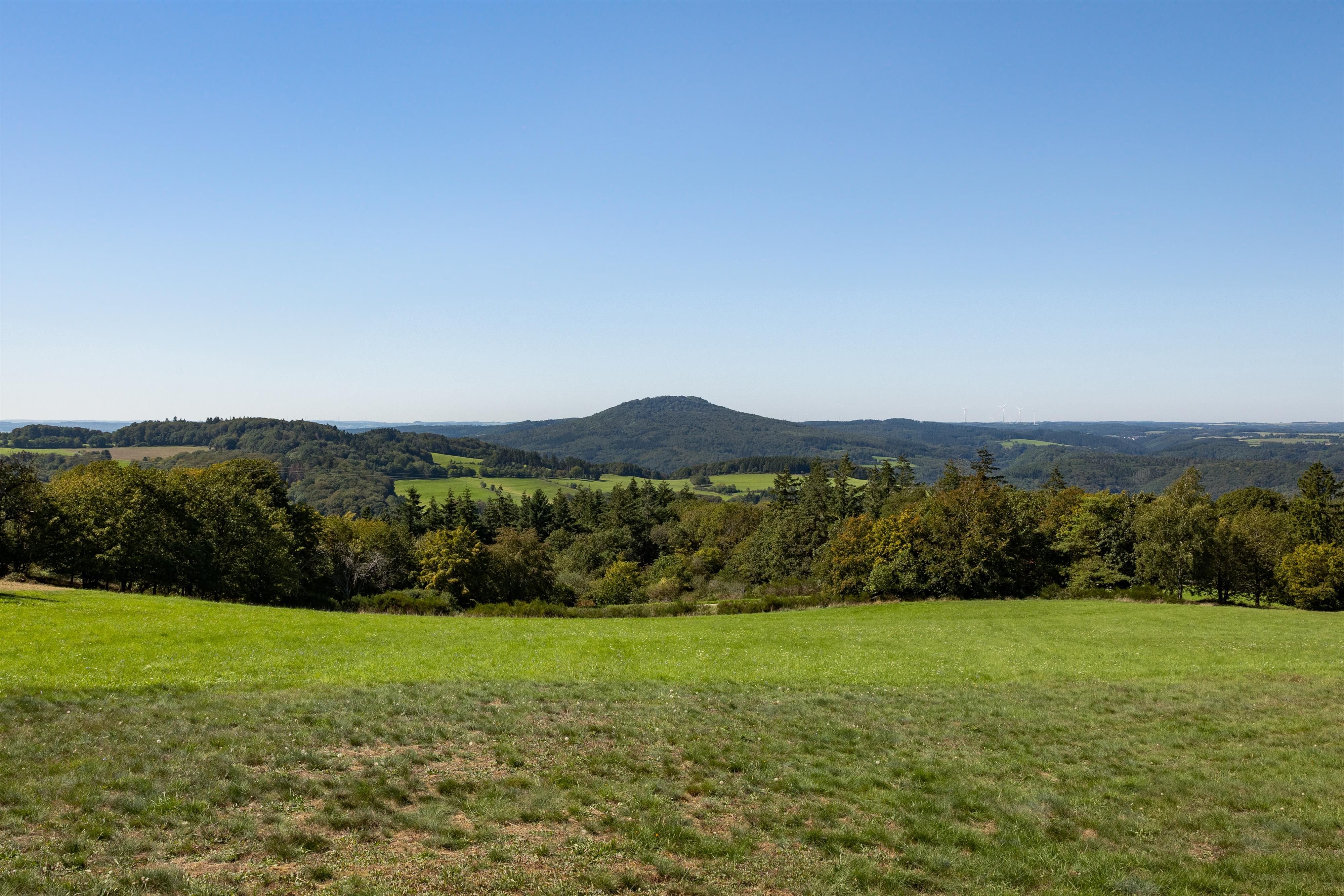 Une vue à couper le souffle conduit le regard de l'observateur vers les chaînes de montagnes les plus frappantes du paysage du Haut Eifel.
