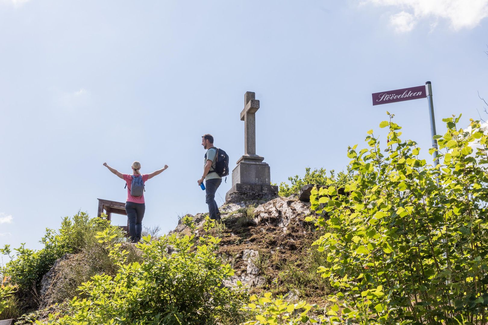 Le point de vue "Schöne Aussicht" a reçu son nom du roi de Prusse Frédéric-Guillaume IV, qui fut très impressionné par la vue lors d'une visite. Le Landrat de l'époque, Bernhard Freiherr von Scheibler, qui accompagnait le roi lors de cette excursion, fit alors ériger une croix en pierre en souvenir. La croix a été détruite pendant la guerre, mais reconstruite par la suite. Le socle provient de l'original datant de 1887.