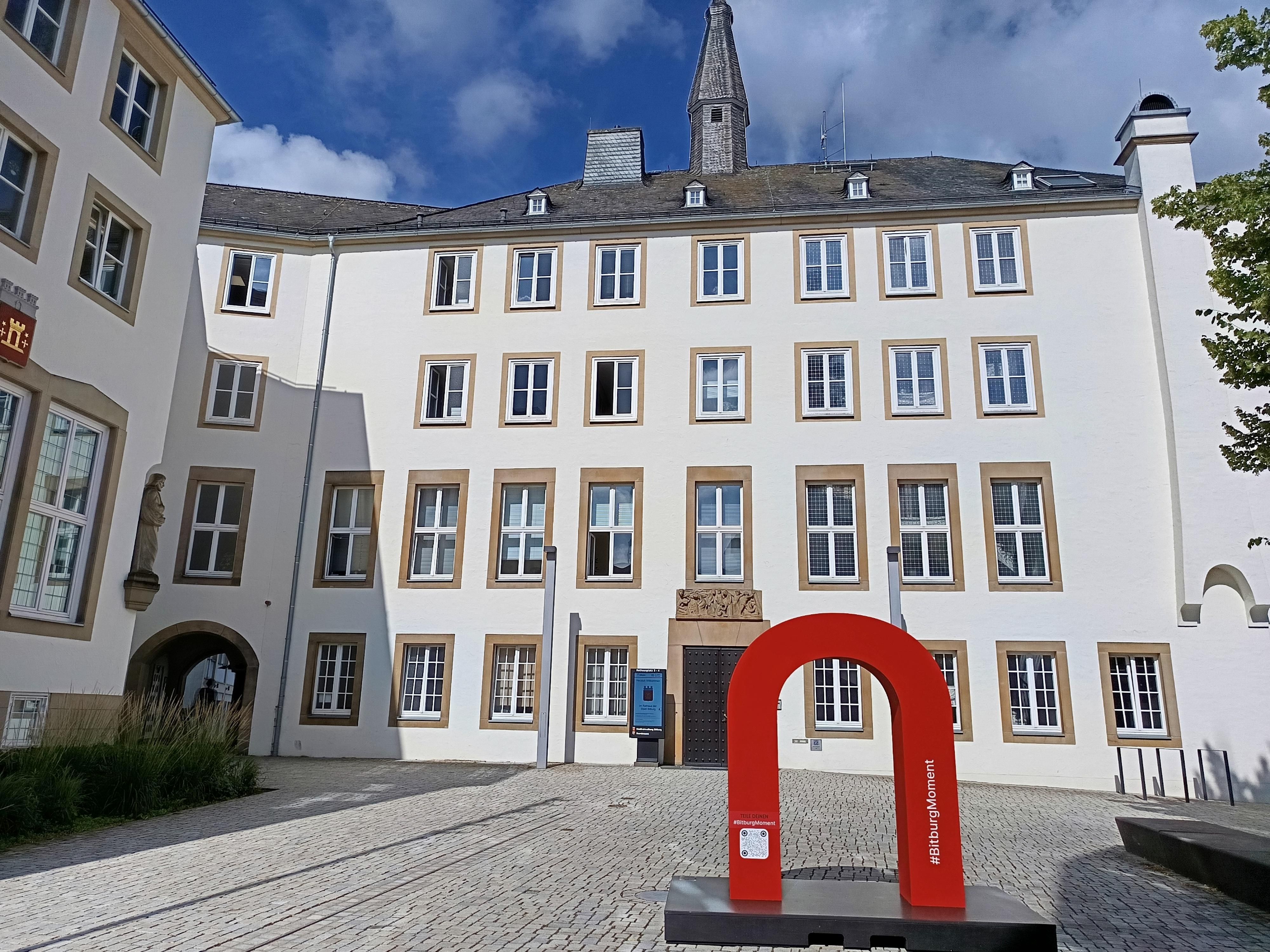 La première mesure issue du concept de marketing du centre-ville a été la réalisation du visuel clé sous forme de point photo autonome en deux formats pour l'extérieur par le service de développement urbain stratégique. Cette arche en 3D attirera le regard des habitants et des touristes et les invitera à immortaliser leur "moment Bitburg" particulier et à partager des photos avec l'arche ou du centre-ville de Bitburg via les médias sociaux en utilisant leur propre hashtag #BitburgMoment.
