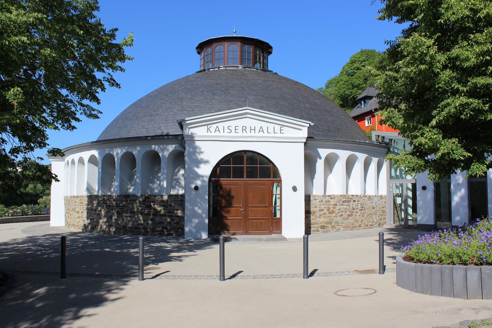 La raison particulière de la construction de la Kaiserhalle sous cette forme de coupole en porte-à-faux était, pour le maître d'œuvre Wilhelm Bell, la nécessité de prouver que l'on pouvait utiliser des matériaux de construction locaux comme la chaux, le sable de lave et le trass, même pour des charges extrêmes. Une telle preuve semblait nécessaire à une époque précédant le tournant du siècle, lorsque le ciment avait commencé sa marche triomphale et que, par conséquent, l'extraction de la semoule dans la vallée de Brohl ne cessait de diminuer.