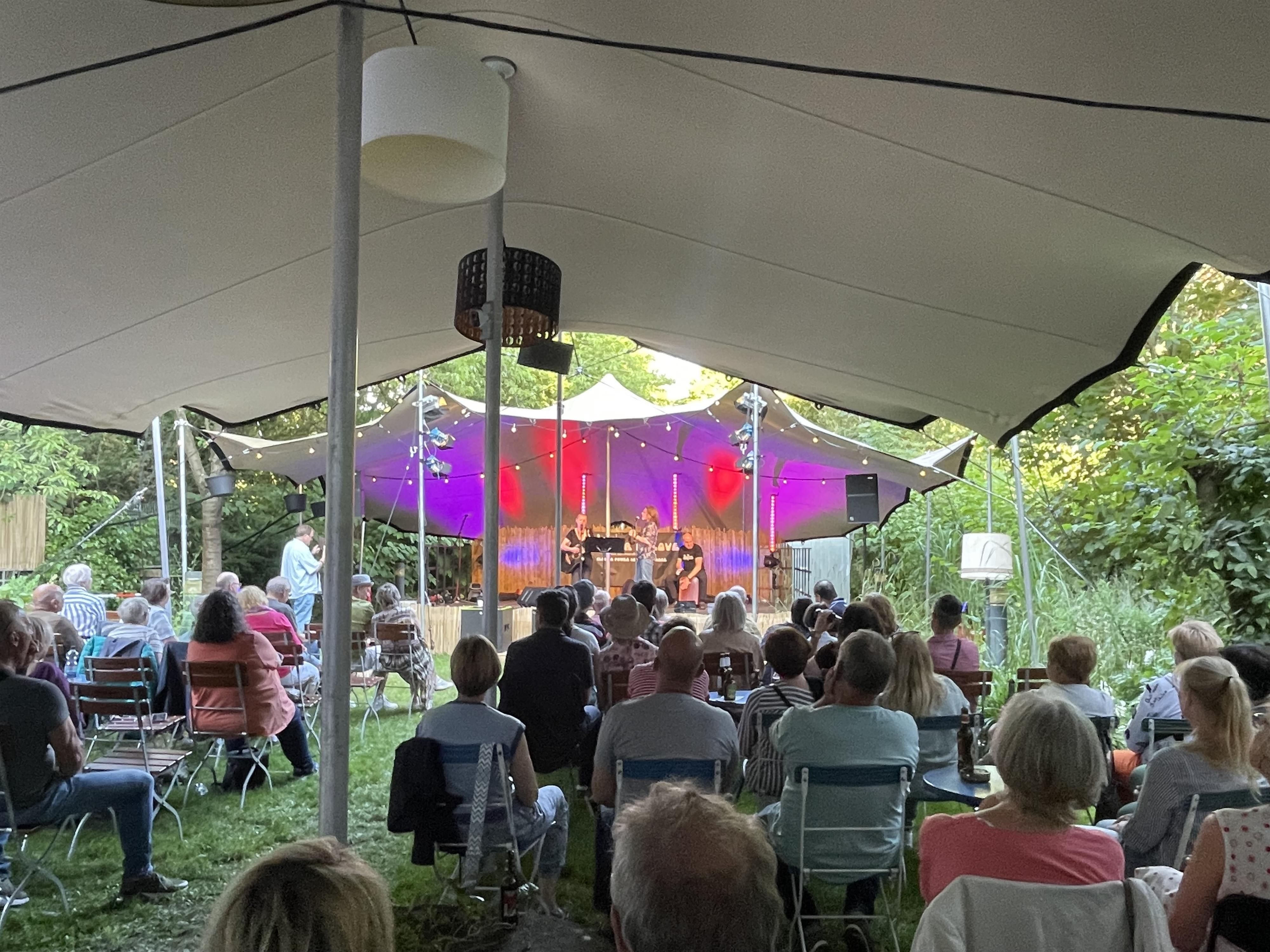 Notre grand jardin événementiel situé derrière le bâtiment constitue un point fort particulier et une caractéristique unique dans le centre-ville. De juin à septembre, de nombreux concerts et soirées comiques y sont organisés en plein air. Sous la devise "KOMM in den Garten", nous t'invitons à admirer des artistes de haut niveau du monde entier dans le jardin magnifiquement illuminé ou à faire la fête avec les groupes locaux (souvent avec entrée gratuite).