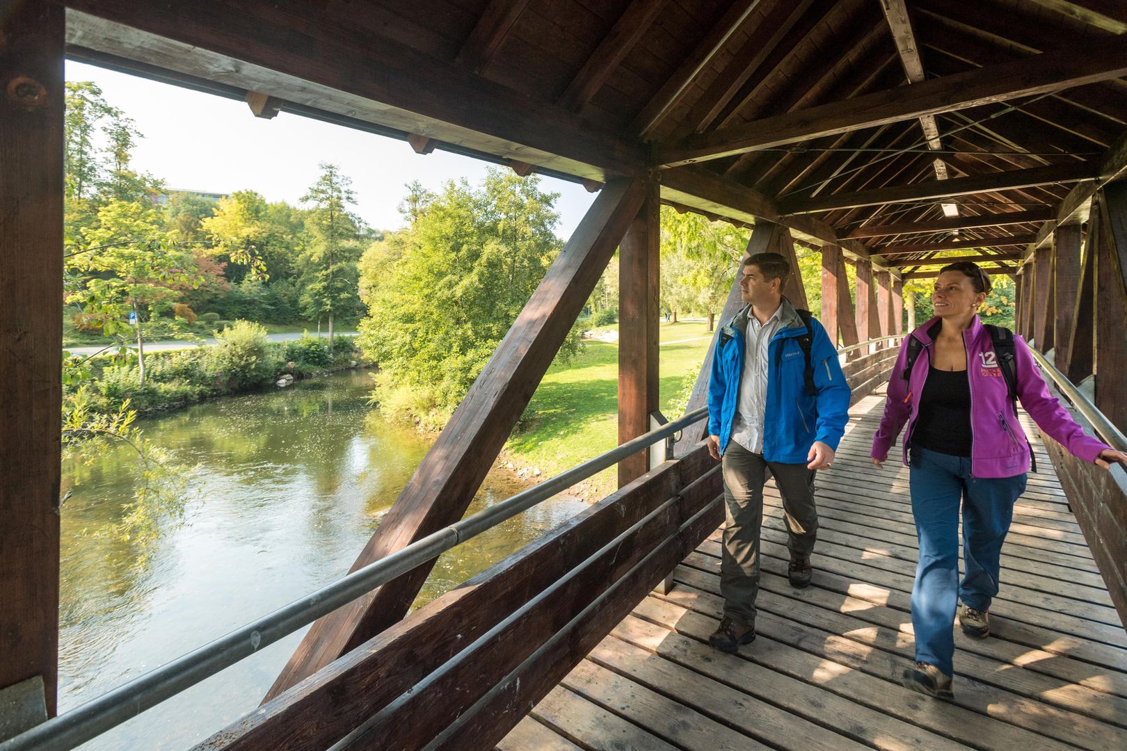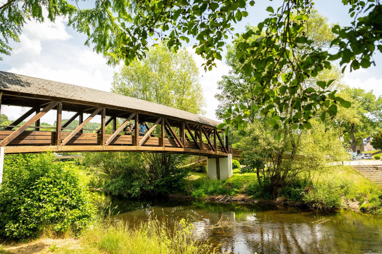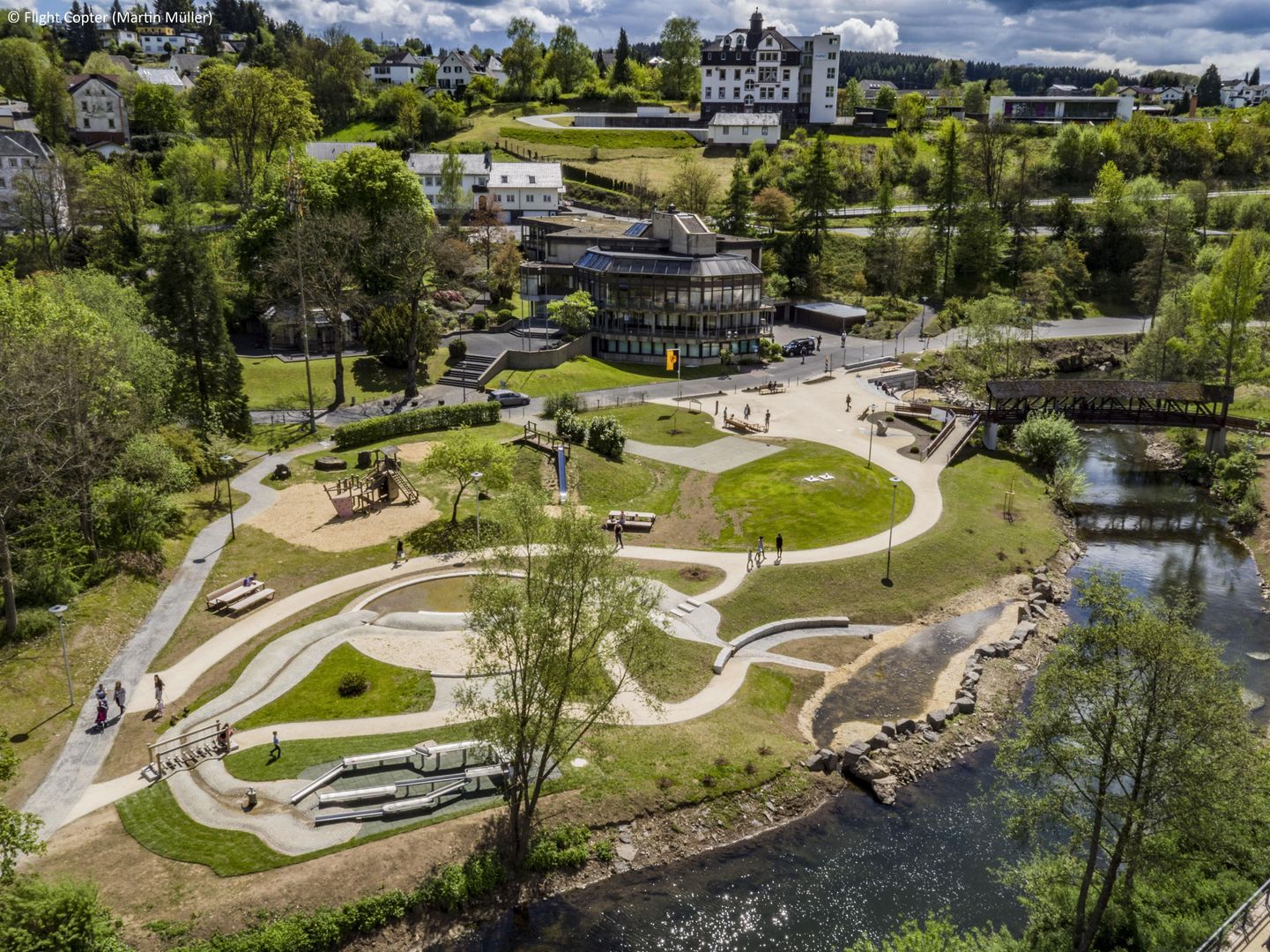 Pour les familles, le parc thermal propose un point fort particulier : la plaine de jeux aquatique sur les rives de la Kyll. Ici, "se mouiller est explicitement souhaité !" – un plaisir estival gratuit pour petits et grands. Les visiteurs audacieux peuvent traverser la Kyll sur les pierres à pas intégrées, tandis que des ponts plus petits offrent une alternative sûre. À des endroits peu profonds, la rivière invite même à rafraîchir ses pieds dans l'eau fraîche.