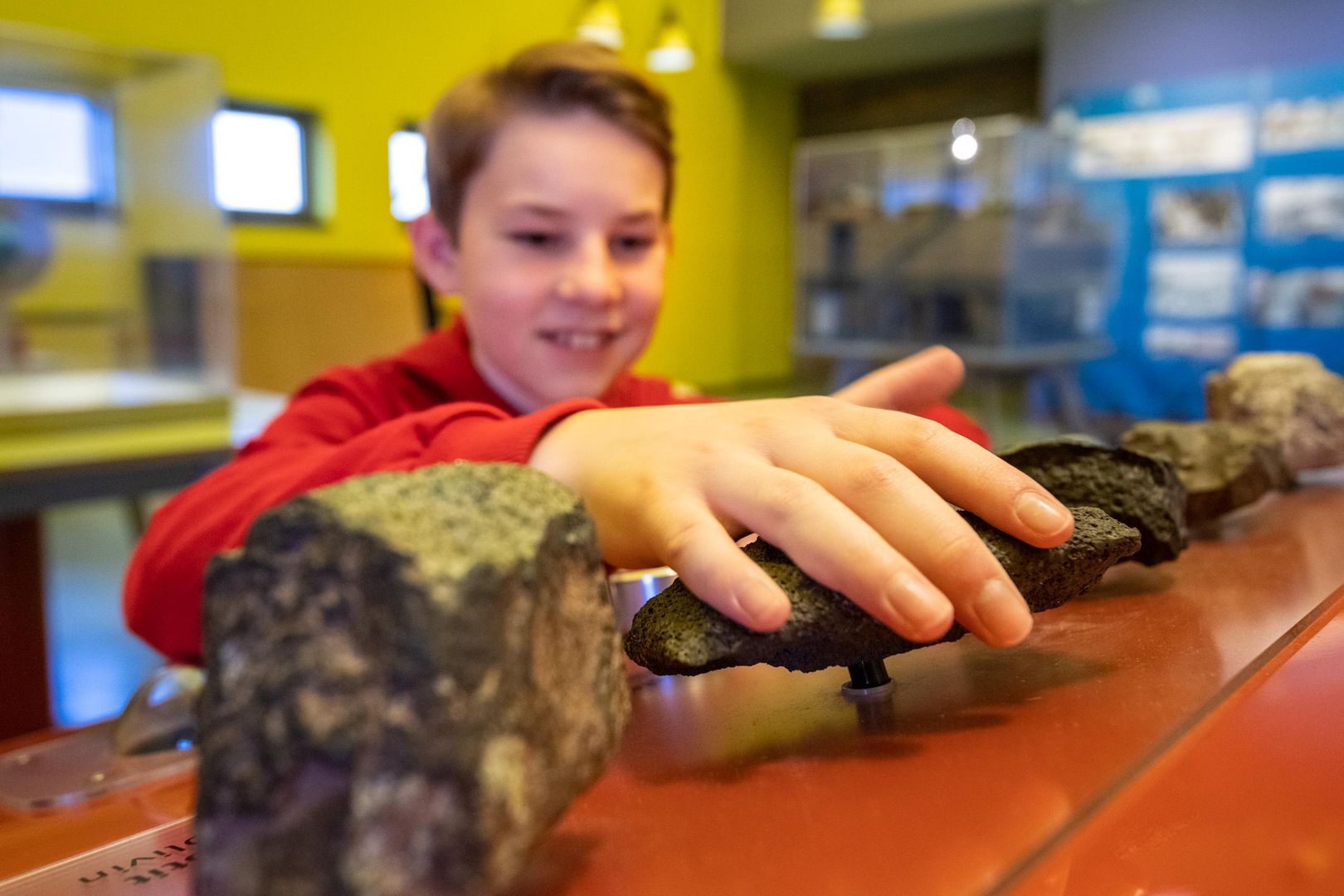 Le "Temps des volcans" fait parler les pierres : En les touchant, on peut entendre et voir comment se sont déroulées les grandes éruptions d'autrefois. Les données sismologiques actuelles sur les éruptions volcaniques et les tremblements de terre ainsi que les images actuelles de webcams du monde entier, consultables en ligne, sont également particulièrement passionnantes. Un camp de chercheurs reconstitué illustre les méthodes et les techniques utilisées par les scientifiques pour étudier les volcans à la loupe. Et dans le cinéma circulaire, une émission d'actualités fictive digne d'Hollywood fait retenir son souffle, car on y voit clairement ce que signifierait une nouvelle éruption du volcan du Laacher See.