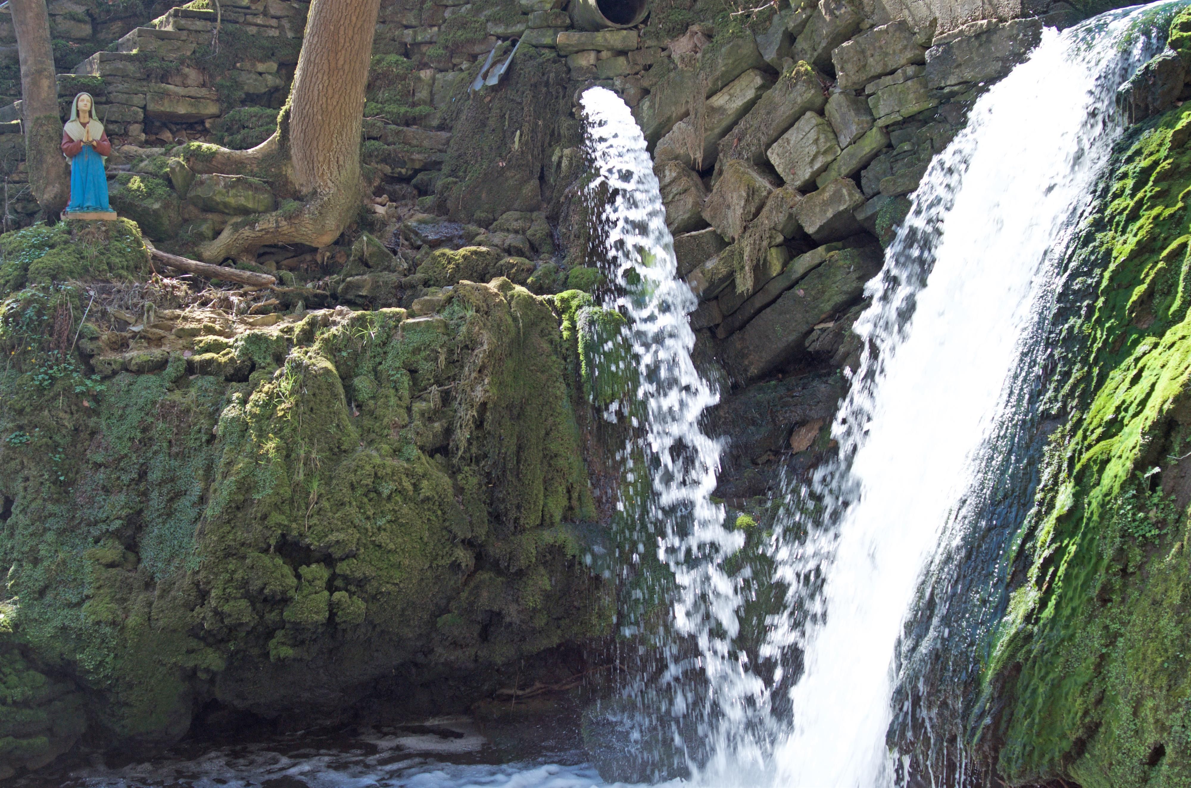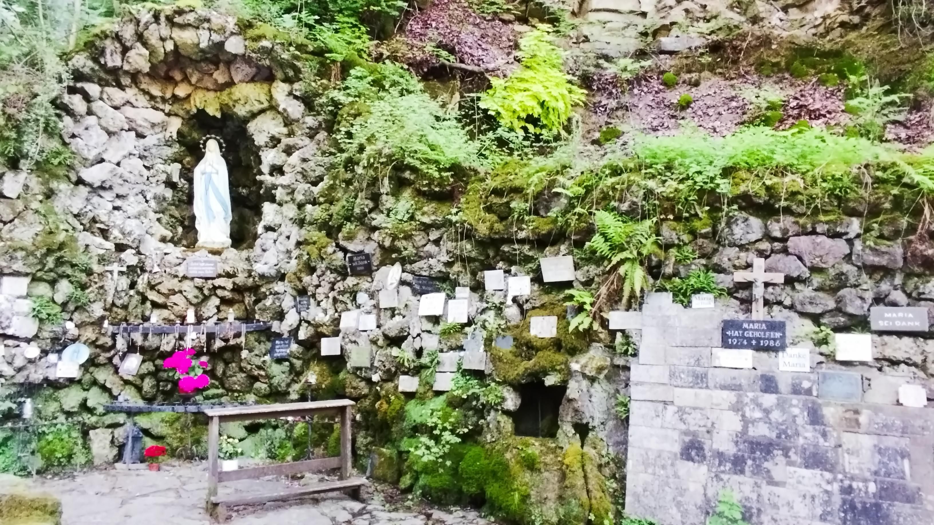 À l'est de Bitburg, à environ 3 km, se trouve l'Albachtal dans une gorge calcaire idyllique. Des escaliers en pierre naturelle (attention : danger de glissade) mènent au lieu enchanté de la Mariengrotte. Mousse, fougères et trèfle bordent le chemin à gauche et à droite. Peu de temps après, la vue d'une cascade et de la Mariengrotte s'ouvre. L'Albach forme plusieurs petites chutes d'eau jusqu'à ce qu'il se jette dans la vallée plus large de l'Albachtal. La plus grande chute d'eau se trouve à la Mariengrotte, qui se trouve dans la vallée. Depuis des générations, c'est un lieu de dévotion mariale et une destination pour de nombreux pèlerins. La plus ancienne tablette date de 1940 et il y a une petite source d'eau dans la grotte, qui est utilisée par les visiteurs comme eau bénite. Sur le site du mémorial, il y a également une Marie agenouillée de l'autre côté de la statue dominante de la Vierge Marie.