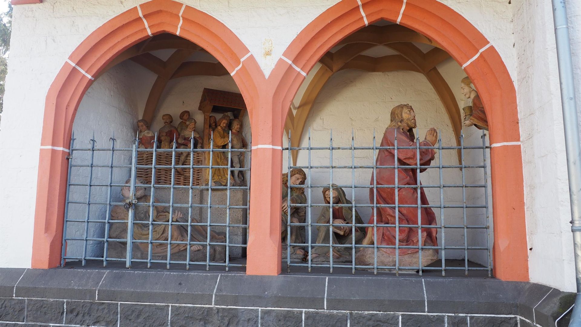 Genovefa, Obermendig La paroisse de St. Genovefa englobe Obermendig, le quartier supérieur de la ville, qui a été mentionné pour la première fois en 1041. Des découvertes de tombes celtes et romaines prouvent que déjà au 2e siècle av. J.-C., la région de Mendig était peuplée. Des documents et actes du Florinstift de Coblence, du monastère de Dünnwald près de Cologne et de l'abbaye de Maria Laach mentionnent Obermendig et sa paroisse, car ils possédaient tous des propriétés à Obermendig. En 1365, on commença la construction d'une église-halle à trois nefs, dédiée à Sainte-Geneviève et à Saint-Laurent. Notre paroisse Sainte-Genovefa est la seule paroisse en Allemagne dont la patronne est Sainte-Genovefa de Paris. Une relique de cette sainte est conservée dans la plus ancienne croix de couloir et de cuillère datée de la région. Genovefa Obermendig Cette croix datant de 1462 orne désormais la nef latérale de notre église. En 1879, l'église a été agrandie selon les plans du professeur Friedrich von Schmidt, l'architecte de l'hôtel de ville de Vienne et de la cathédrale Saint-Étienne. Aujourd'hui encore, cette église de style gothique tardif rayonne loin au-dessus de la localité. D'autres rénovations à l'intérieur et à l'extérieur de l'église ont eu lieu en 1962 et 1977. Depuis, un carillon retentit trois fois par jour dans la tour. Ainsi, en plus des chants profanes et religieux, vous pouvez également entendre le Genovefalied. Nous vous invitons à visiter notre église, que ce soit lors d'un office ou tout simplement pour le plaisir. Vous serez fasciné par la beauté de notre église. Il y a beaucoup à découvrir à l'intérieur : les stations du chemin de croix d'Engido Weinert, les peintures murales, la chapelle de la paix avec les noms de tous les morts d'Obermendiger, l'autel de la Vierge, le maître-autel doré, la chaire magnifiquement sculptée. Notre église est certes construite en pierres, mais notre paroisse est composée de nombreuses pierres vivantes, de personnes qui s'engagent pour cette église, qui célèbrent la messe ensemble, qui accueillent chaleureusement leurs baptisés à l'église, qui organisent une vie paroissiale active. Le conseil paroissial est soutenu dans cette tâche par les nombreuses associations et groupements ecclésiastiques : la communauté catholique des femmes, les servants de messe, la chorale de l'église, l'association de soutien, la jeunesse catholique, la confrérie des tireurs de St. Sebastianus et la garderie d'enfants de St. Genovefa.