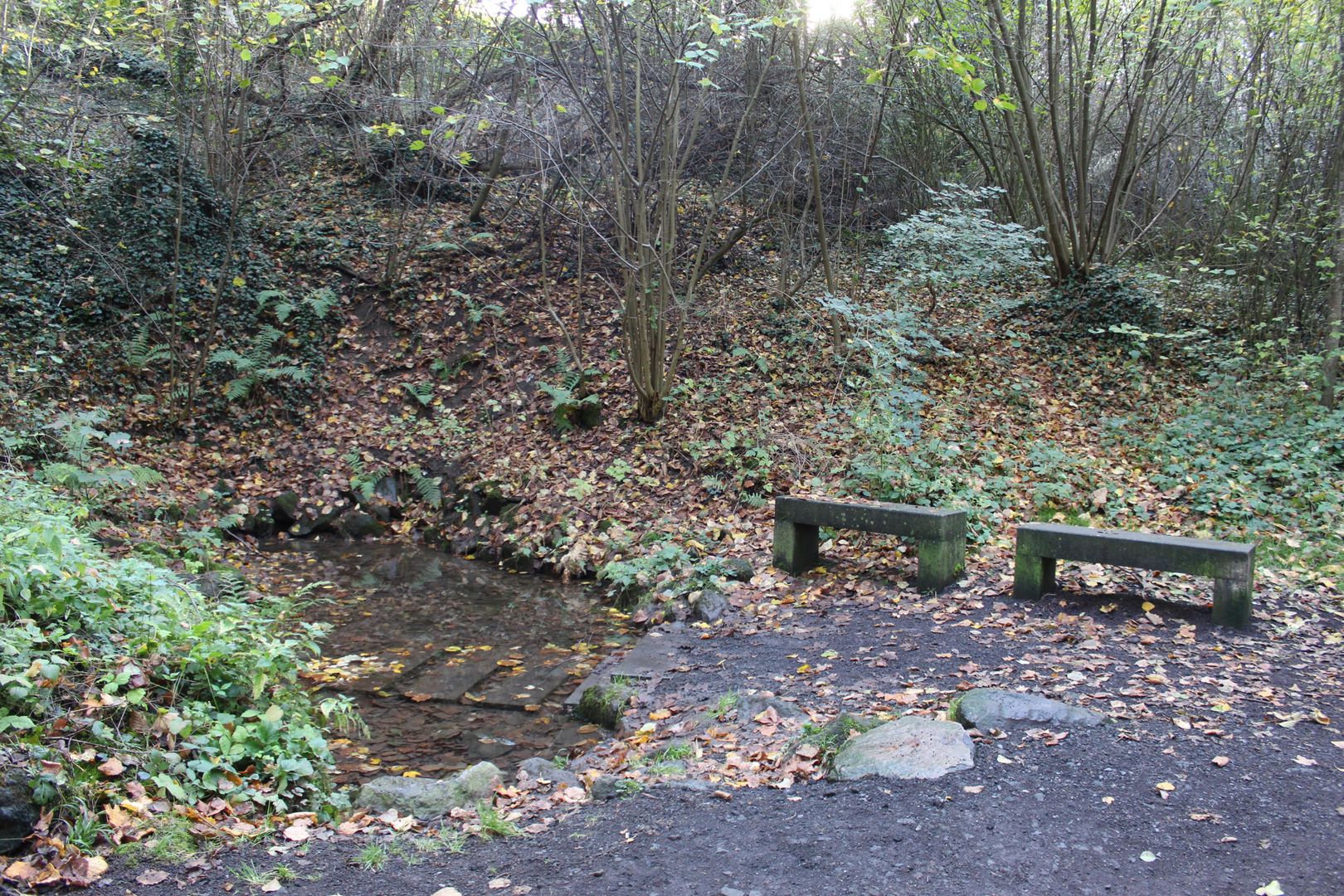 Dans le cadastre primitif de Plaidt datant de 1826, les géomètres prussiens, étrangers à la région, ont appelé cette petite source et le lieu-dit environnant "Im Hützeborn". En dialecte, elle s'appelle "Hetzebue", le "ue" ne se prononçant pas comme "ü" mais comme "u". En haut allemand, cela signifie "Hitzeborn", ce qui fait référence à une source chaude. La température de l'eau est nettement positive tout au long de l'année. Lors du déplacement des conduites d'eaux usées de l'ancienne station d'épuration derrière l'école vers la station d'épuration d'Andernach à la fin des années 1990, qui passe exactement sous le chemin dans cette partie du parc, le "Hetzebue" a été complètement enseveli. Quelques années plus tard, il lutta à nouveau pour remonter à la surface. En 2014, l'association historique de Plaidt a fait aménager le "Born" de manière à ce qu'il soit possible de faire une petite pause à cet endroit et de marcher sur le lit de la source.
