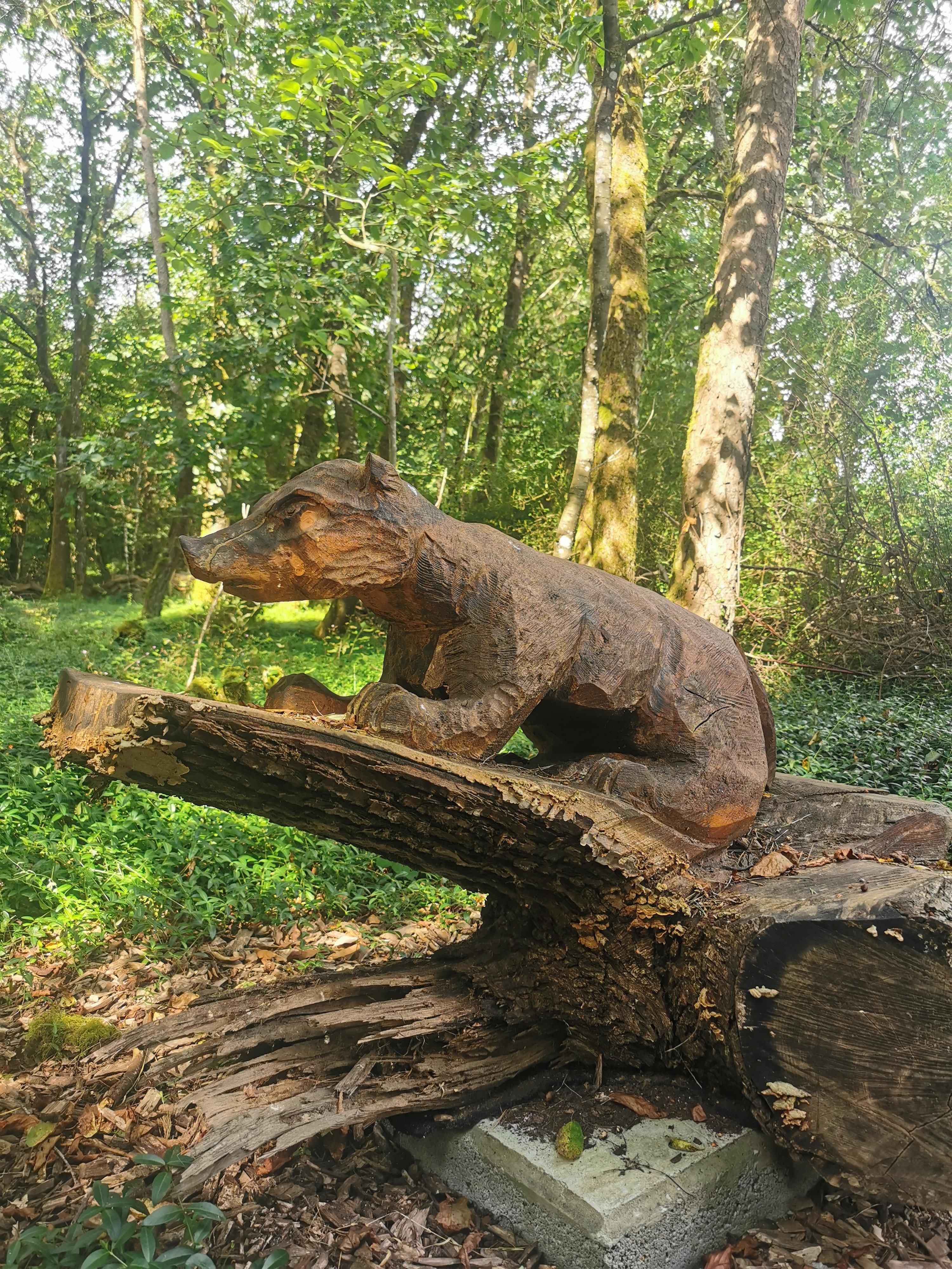 Des sculptures en bois faites à la main d'animaux locaux, comme des cerfs, des sangliers, des renards, des hiboux grands-ducs et des chevreuils, sont réparties sur le terrain de l'aire de repos. Les figurines sont de taille naturelle ou légèrement surdimensionnées afin d'impressionner les enfants comme les adultes et de rendre la biodiversité de la région plus tangible.