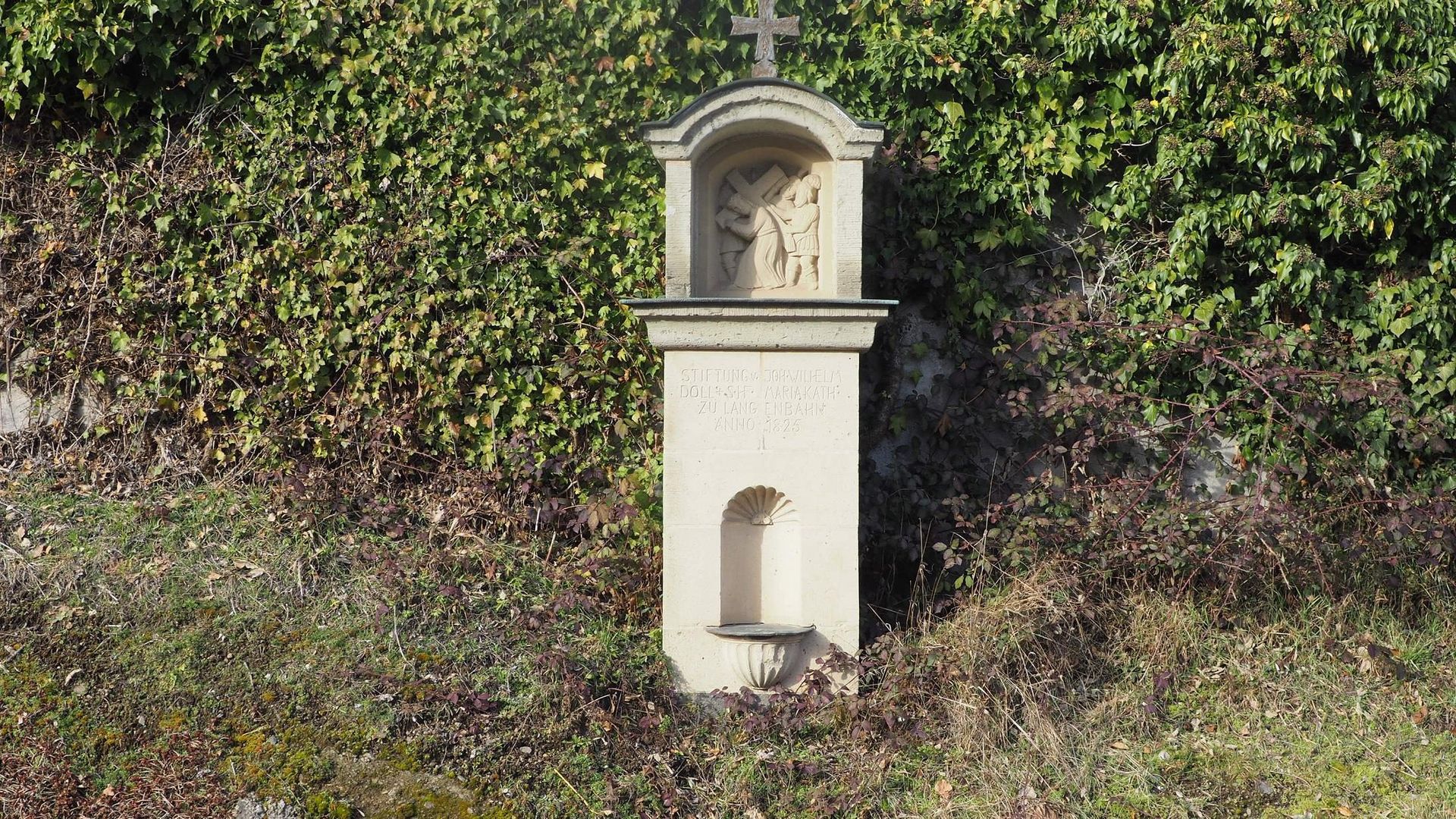 Depuis l'église paroissiale Saint-Hubert, au centre du village de Rieden, le chemin de croix sculpté dans le tuf, avec ses sept chutes de pied, descend presque jusqu'à l'emplacement de l'actuel lac de la forêt. Les différentes stations illustrent le calvaire de Jésus-Christ. La représentation picturale est parfaitement réalisée, dans le style baroque, et montre à chaque station une scène différente. À Rieden, comme dans de nombreuses localités de la région, il existe un chemin de stations baroque, les "sept chutes de pieds". Celles-ci trouvent leur origine au Moyen-Âge. Les croyants y suivaient le chemin de la Passion du Christ. Comme on fait une "chute de pied" (génuflexion) avant chaque station, comme on le fait pour le chemin de croix, on a appelé ces stations des "chutes de pied". Les cascades de Rieden ont été construites au début du 19e siècle et restaurées à la fin des années 70 par le tailleur de pierre Franz Nett de Rieden.