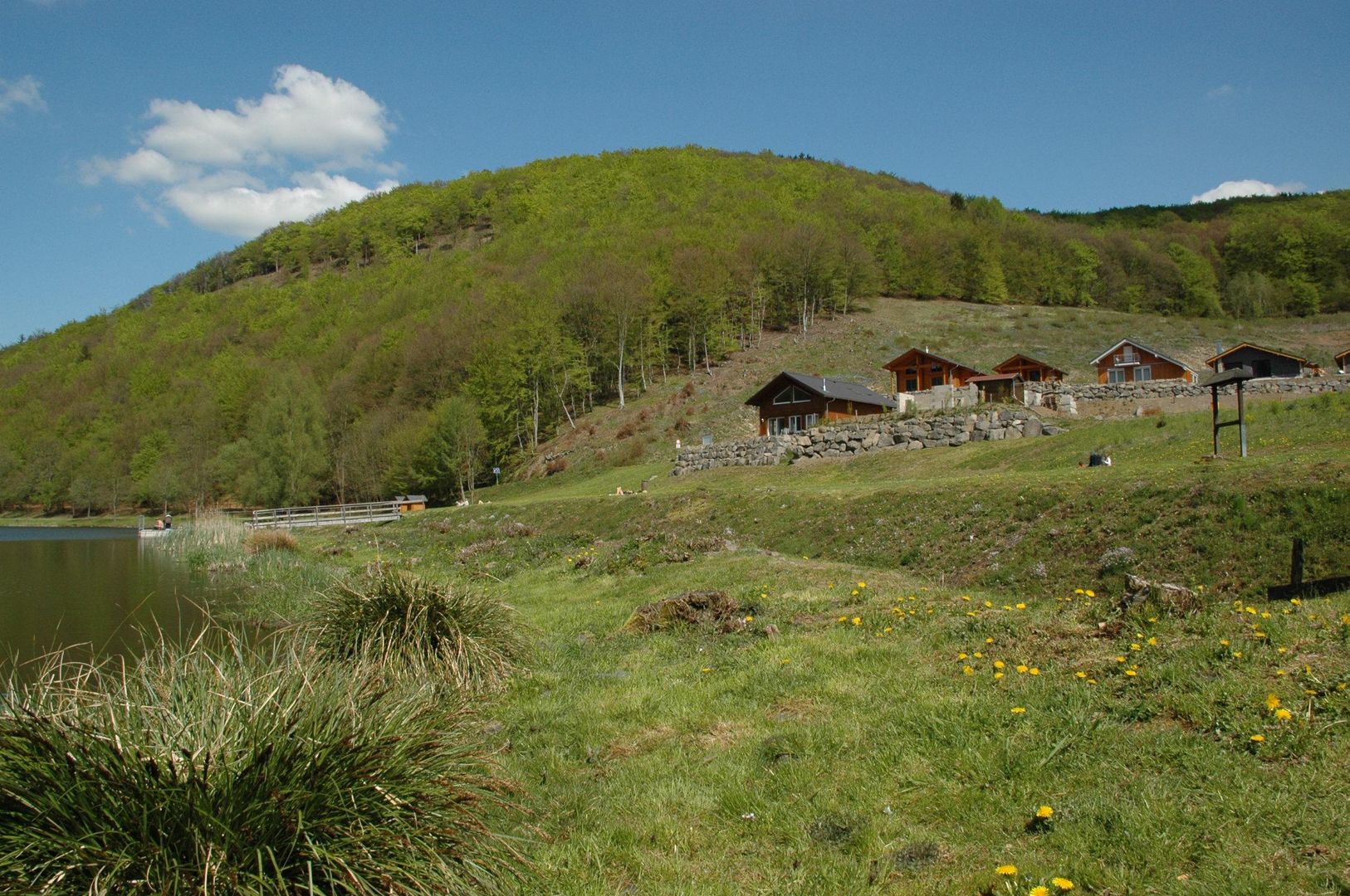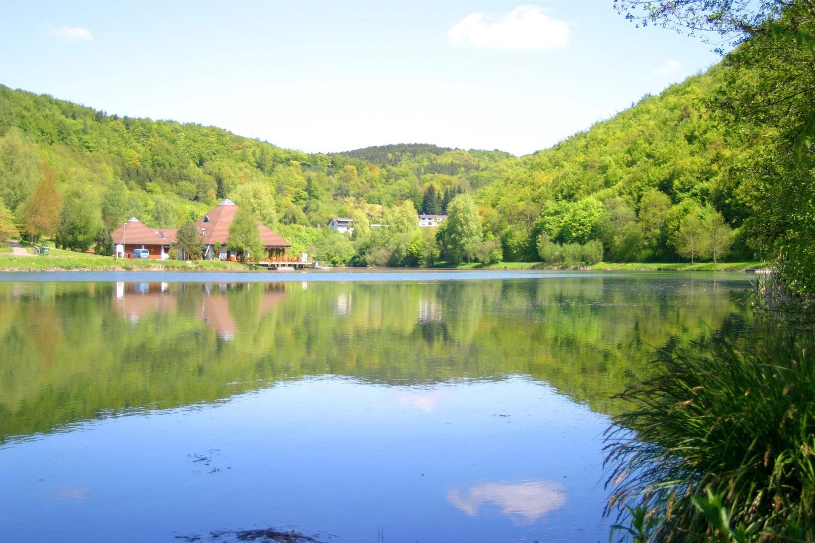 Situé entre les moulins de Rieden et le village de Rieden, le lac de barrage a une surface d'eau d'environ quatre hectares et est alimenté par le Rehbach. Comme la source jaillissait à l'origine près du presbytère, le lac forestier est aussi appelé en plaisantant "le plus grand bénitier du monde". Le propriétaire du lac est le Zweckverband Waldsee Rieden. Le lac se trouve dans le district de Mayen-Koblenz et a une superficie d'environ 4 hectares. À son point le plus profond, le lac descend à 8 mètres. La grande ville la plus proche à partir de laquelle on peut visiter le lac est Mayen. Les lacs Laacher See (environ 8,1 km), Waldsee (environ 9,9 km) et Heilbachsee (environ 19,8 km) se trouvent également à proximité.Le lac est utilisé pour la baignade par beau temps, l'eau répond aux directives de l'Union européenne (UE) en tant qu'eau de baignade, offre une excellente qualité d'eau et permet ainsi de profiter pleinement de la baignade. Deux passerelles facilitent l'accès à l'eau. Des aires de repos directement sur la rive, des aires de jeux et de barbecue pour les enfants, le tennis, la location de bateaux, la pétanque et les échecs, des sentiers de promenade aménagés et un plateau de baignade permettent de varier les plaisirs. Un hôtel-restaurant avec une rue sur le lac veille au bien-être des visiteurs. Un bâtiment avec des vestiaires et des installations sanitaires complète l'offre.Village de vacances au lac forestier de RiedenSitué de manière idyllique directement au bord du lac forestier de Rieden, ce parc de vacances se trouve au milieu du parc volcanique de l'Eifel et s'adresse aux amoureux de la nature qui souhaitent échapper à l'agitation bruyante et frénétique du quotidien. Nichées dans une vallée en légère pente, entourées d'une forêt mixte avec des hêtres imposants, parfois centenaires, les maisons de vacances se blottissent en plusieurs terrasses sans passage sur le versant sud-est du Schmalberg. Que ce soit pour une courte escapade le week-end ou pour vos vacances annuelles, le temps passé dans le village de vacances est idéal pour décompresser et se détendre.