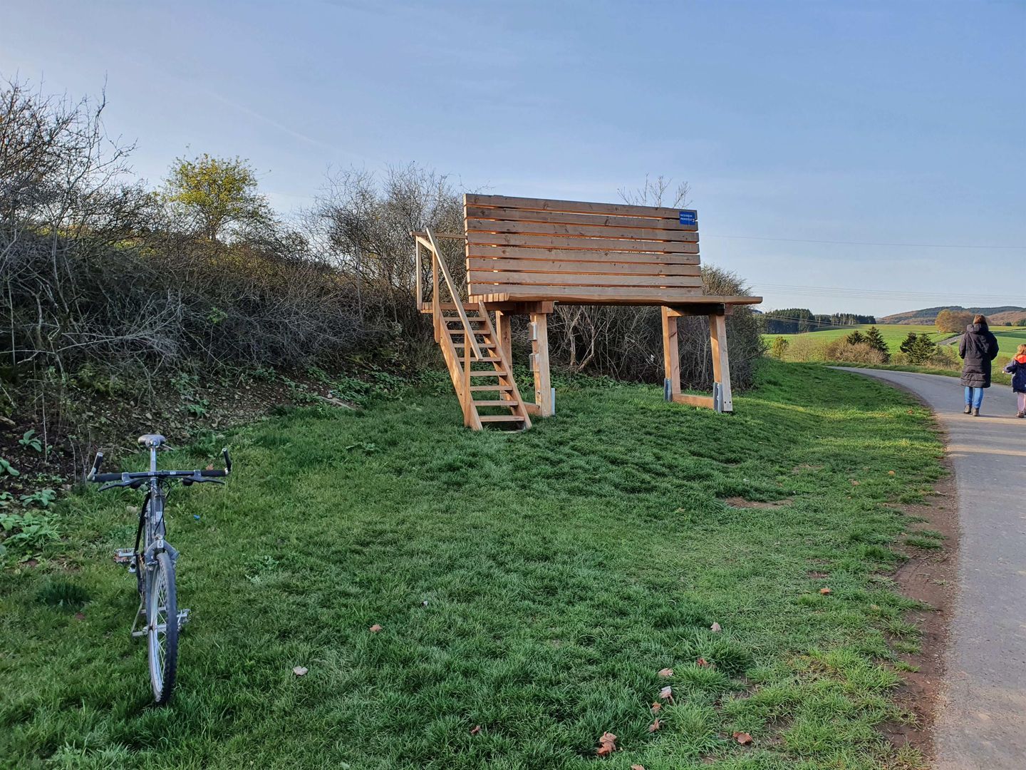 Vous pouvez atteindre ce banc XXL à pied en empruntant le chemin Albachhöhenweg qui passe juste à côté. En venant de Pronsfeld sur la L16 en direction de Habscheid, un chemin rural se trouve à gauche juste après le village. Suivez-le sur environ 200 m jusqu'à la croisée, puis tournez à gauche. De là, le banc géant est à seulement 350 m.
