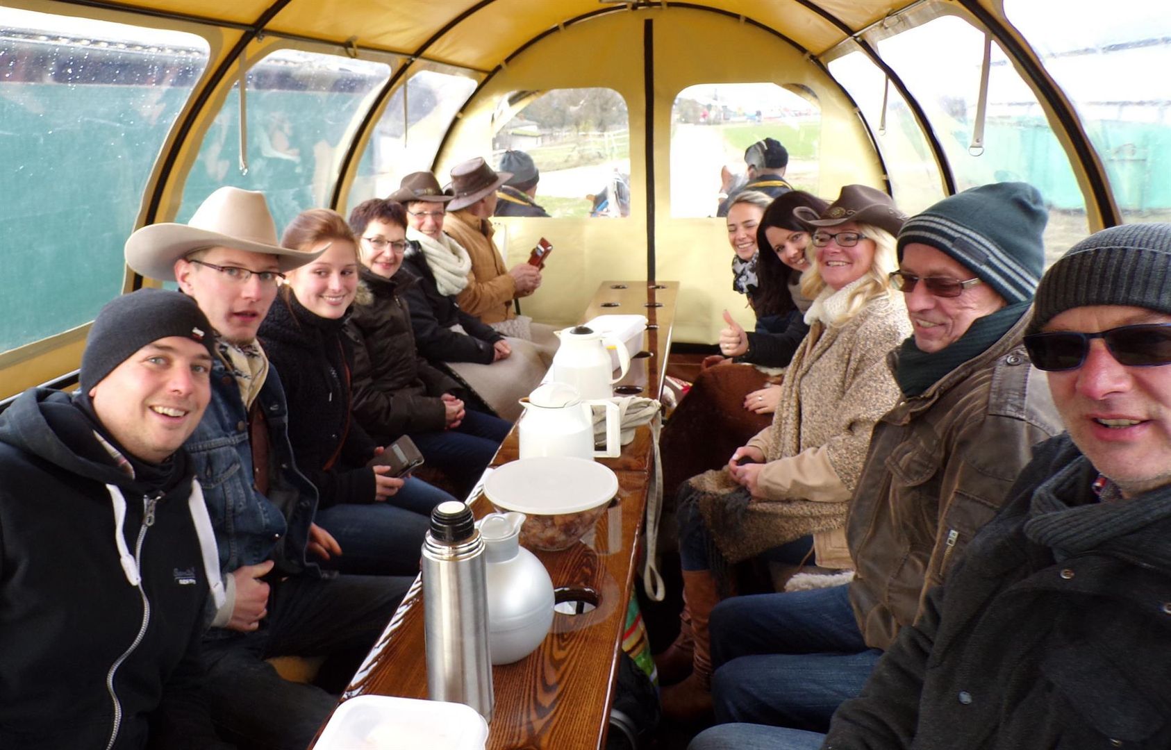 Le merveilleux paysage du Bitburger Land peut être particulièrement bien exploré lors d'une promenade en chariot couvert. Au total, trois voitures sont disponibles. Une promenade en calèche est possible de huit à vingt personnes au maximum. Le départ est possible depuis le River Ranch à Seffern, ou depuis un point de départ individuel dans les environs. Les promenades en calèche ne sont possibles que dans le cadre d'un service de traiteur ou d'une fête ultérieure, par exemple un barbecue au feu de camp.