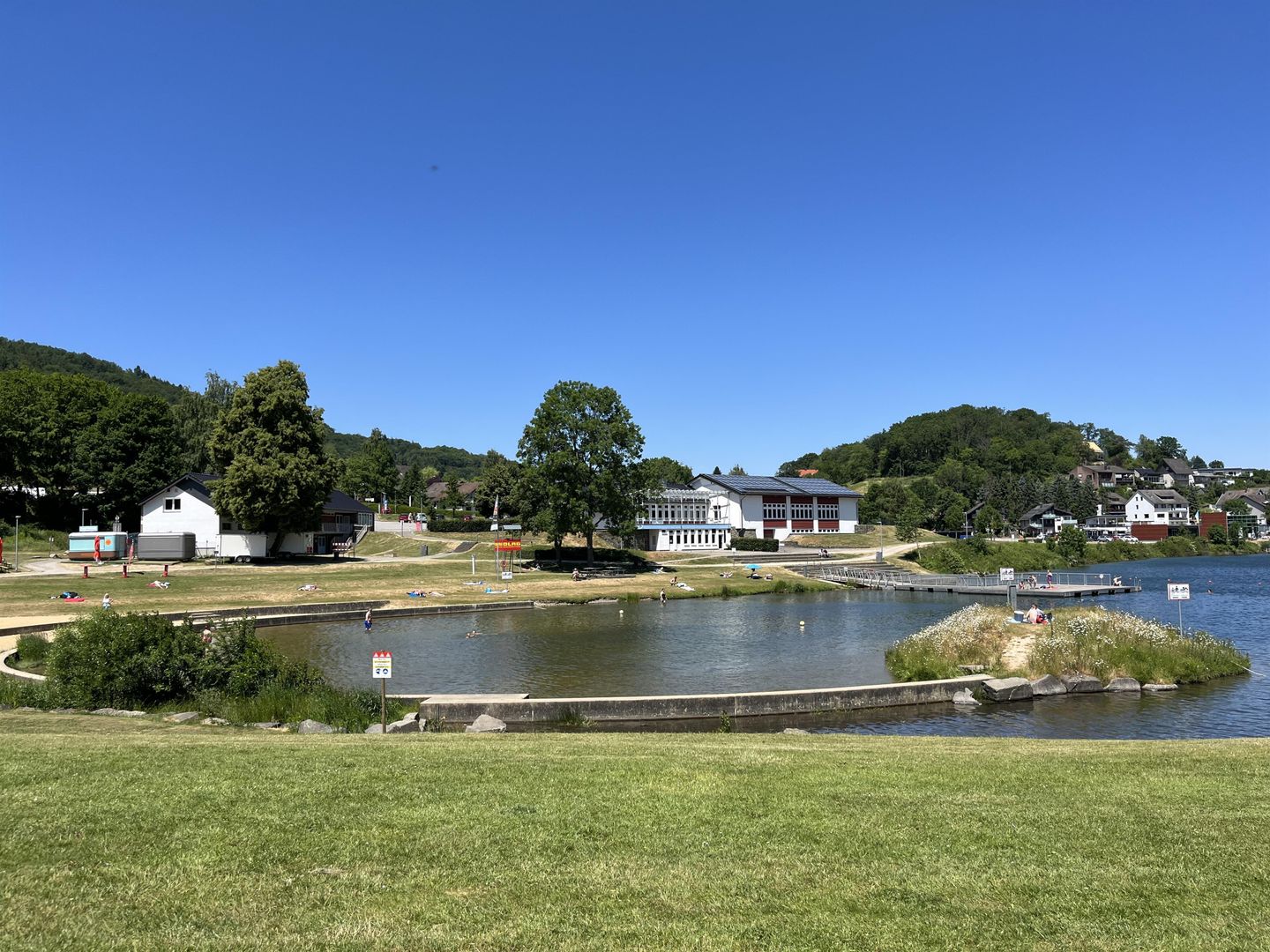 Le Rurseezentrum abrite une piscine naturelle en plein air très prisée, dont l'eau claire est appréciée par tous les visiteurs. La plage de sable aménagée avec une zone d'eau peu profonde pour les enfants et une aire de jeux répond à tous les désirs des petits comme des grands pour s'adonner aux plaisirs de l'eau. Sur la vaste pelouse de baignade, chacun trouve une place, que ce soit au soleil ou sous l'un des nombreux beaux arbres. Pendant les mois d'été, la DLRG est sur place et surveille la baignade (tous les jours pendant les vacances d'été en Rhénanie-du-Nord-Westphalie et les week-ends de mai-août).