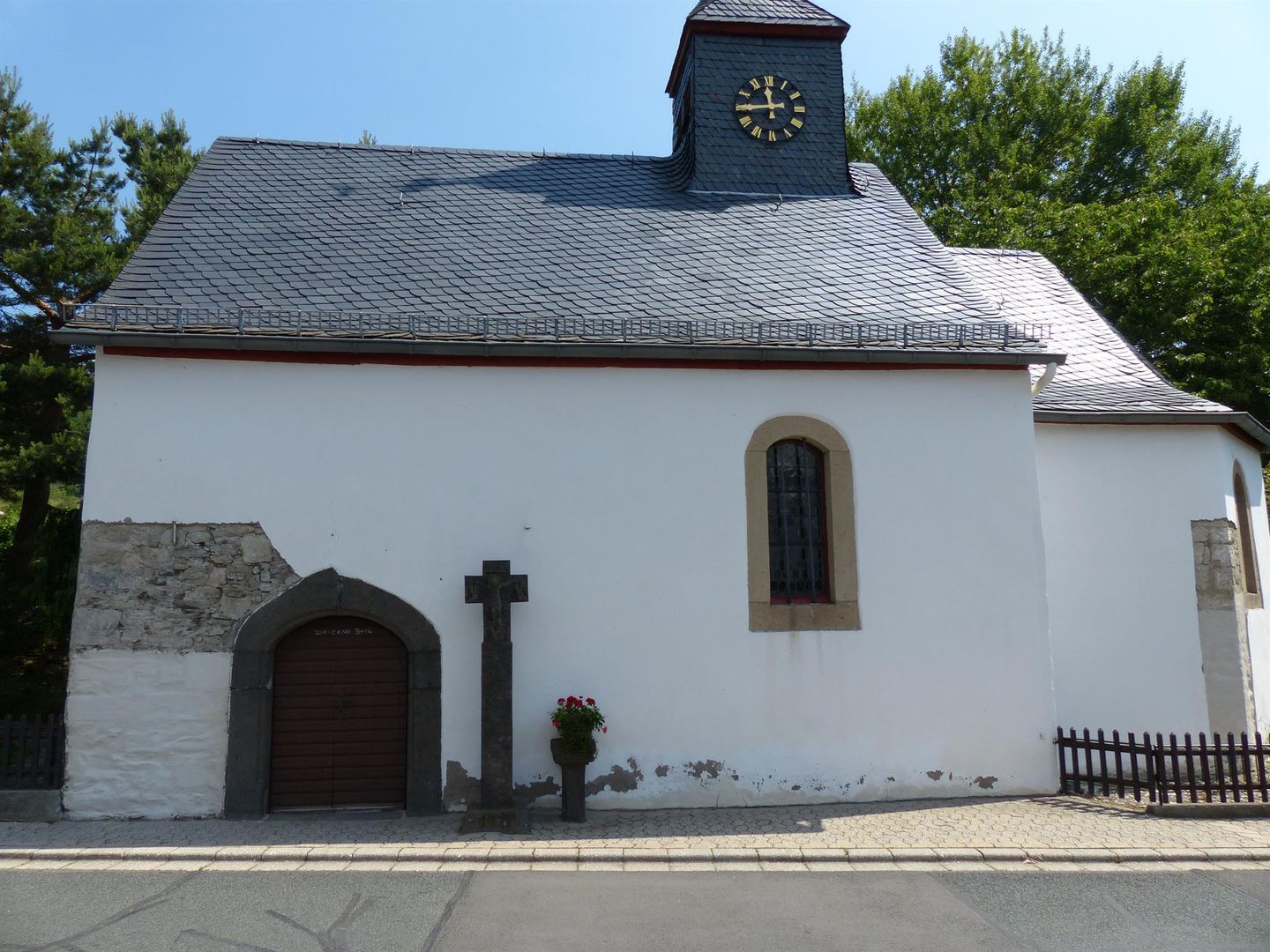 La chapelle Sainte-Anne est située dans le village idyllique de l'Eifel de Hausten-Morswiesen (Hauptstrasse 10) et appartient à la paroisse de Sainte-Barbara à Weibern. La chapelle, mentionnée pour la première fois en 1671, est consacrée à sainte Anne, la mère de Marie. Le retable de la chapelle date de la première moitié du XVIIe siècle et représente l'apôtre Simon (avec la scie) et l'apôtre Judas. Les armoiries de von Schmittburg et Waldbott von Bassenheim sont également visibles sur l'autel. À côté de l'entrée de la chapelle Sainte-Anne se trouve une croix en lave de basalte avec un corps et trois anges - tenant un calice - de 1668. A côté se trouve une pierre de repos avec un balustre, également en pierre de basalte.