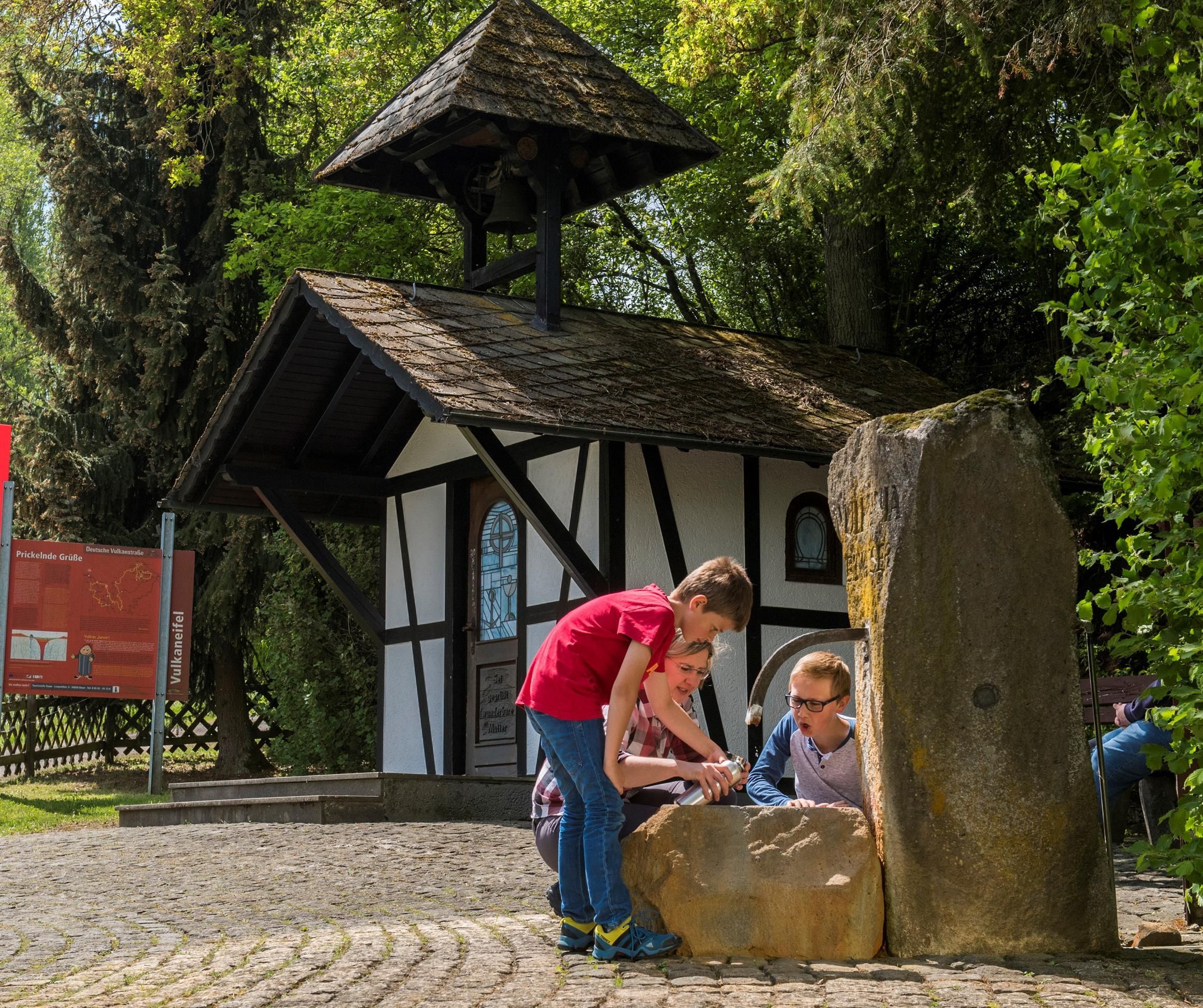 À quelques pas de la source se trouve une chapelle qui invite à s'arrêter un peu plus longtemps. Sur votre route à travers la Deutsche Vulkanstraße, vous vous arrêterez pour un petit rafraîchissement. N'hésitez pas non plus à remplir l'eau pour des cures de boisson.