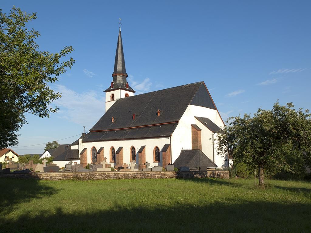 L'église de pèlerinage de Weidingen a été construite au 13ème siècle et reconstruite au 18ème siècle comme église de chœur. La Pietà sur l'autel principal (vers 1450), les fonts baptismaux dans le chœur, l'autel en pierre avec la Pietà (vers 1650) et les saints assistants dans la nef nord ainsi que, sur le mur nord, le retable avec les puissants "maréchaux de Dieu" Hubertus, Antonius, Cornelius, Quirinius et les femmes Barbara et Lucia valent la peine d'être vus.