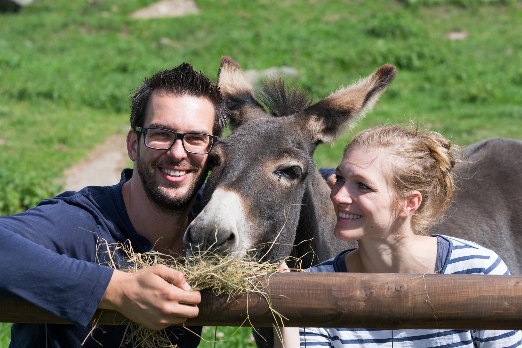 Le grand terrain de jeu d'aventure est aussi le point de départ du circuit plus court de la ferme avec des bovins, des ânes, des chèvres, des moutons, des lapins, des cochons d'Inde et des volailles. C'est exactement ce qu'il faut pour les personnes à mobilité réduite, les parents avec de jeunes enfants et tous ceux qui n'aiment pas marcher. La terrasse extérieure et la fauconnerie avec différents rapaces sont également accessibles aux personnes à mobilité réduite.