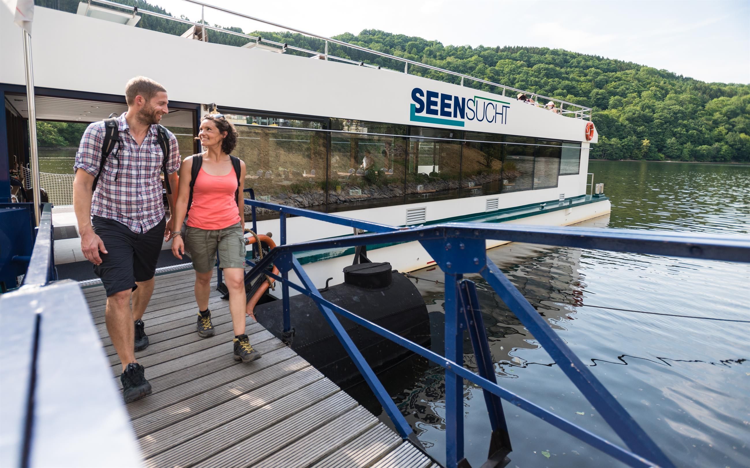 Il est également recommandé de faire un tour sur le lac supérieur. Les bateaux électriques modernes et silencieux "St. Nikolaus" et "Seensucht" circulent ici au départ ou à destination d'Einruhr. De là, un sentier de randonnée mène à Vogelsang.