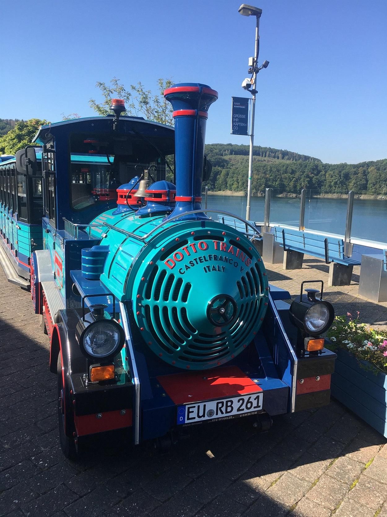 Le circuit d'une heure avec le "Rursee Bahn" jusqu'à la petite ville thermale de Heimbach est également une expérience à ne pas manquer. Le trajet passe par le petit bassin de retenue, la centrale électrique de style Art nouveau, le parc national de l'Eifel tout proche et le parc de vacances Landal jusqu'à Schwammenauel. Ce train est particulièrement intéressant pour les visiteurs des Pays-Bas et de Belgique, car le "Rursee Bahn" a une liaison ferroviaire directe avec Aix-la-Chapelle-Düren-Heimbach.