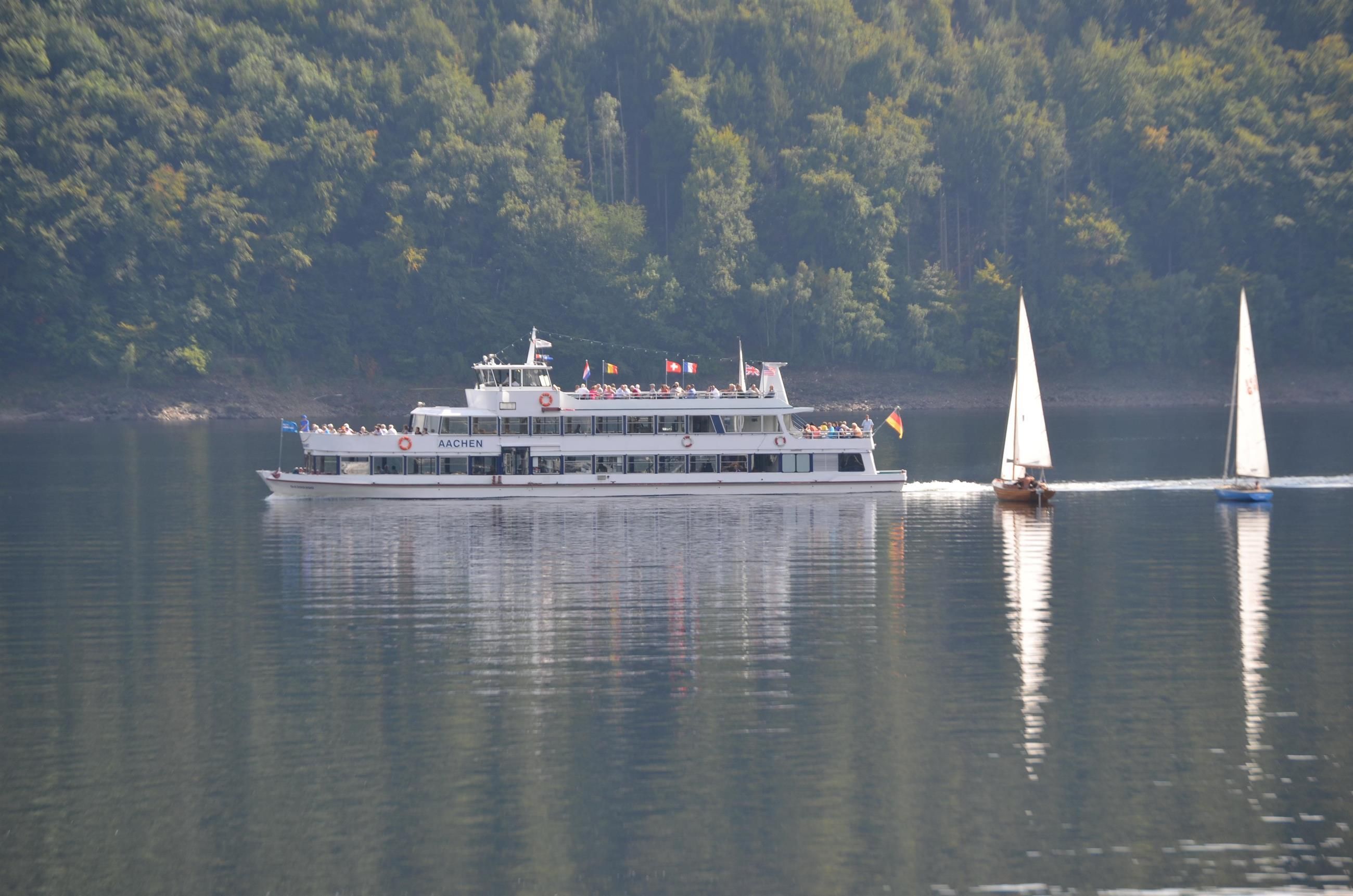 Les trois barrages Rursee Schwammenauel, Obersee et Urftsee forment le plateau des lacs de l'Eifel. C'est ici que la flotte blanche de la Rursee Schifffahrt a élu domicile. Avec le lac supérieur, le lac de la Rur, d'une superficie de 8 km², fait environ 20 km de long.