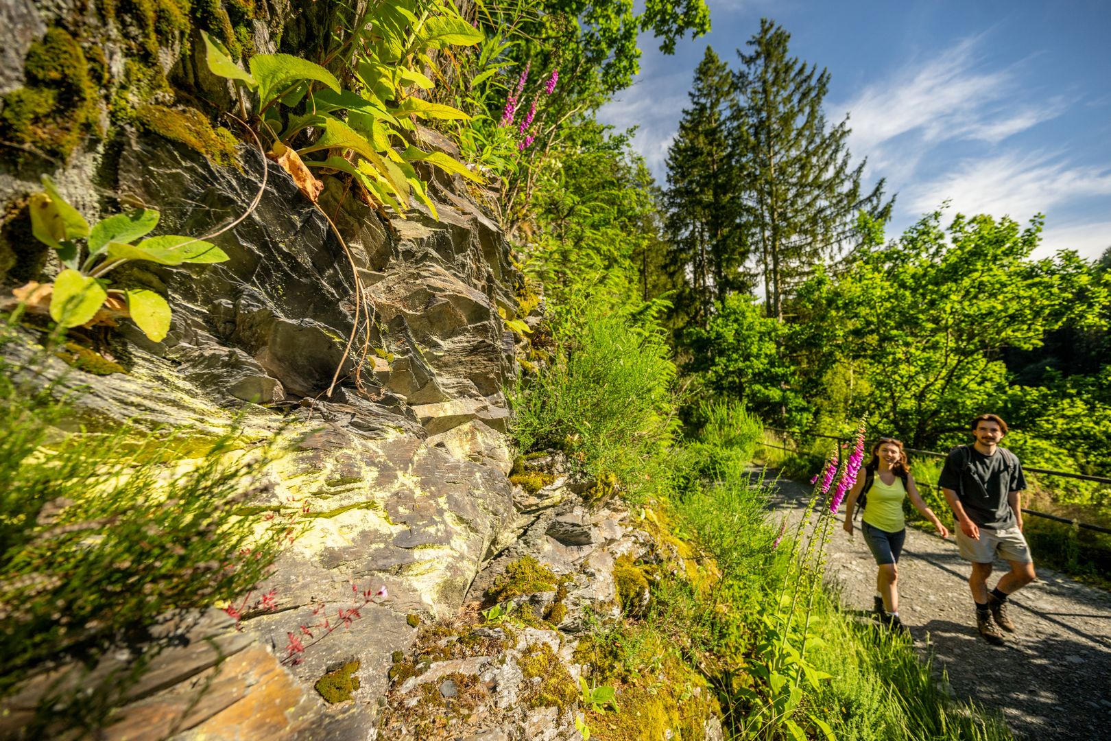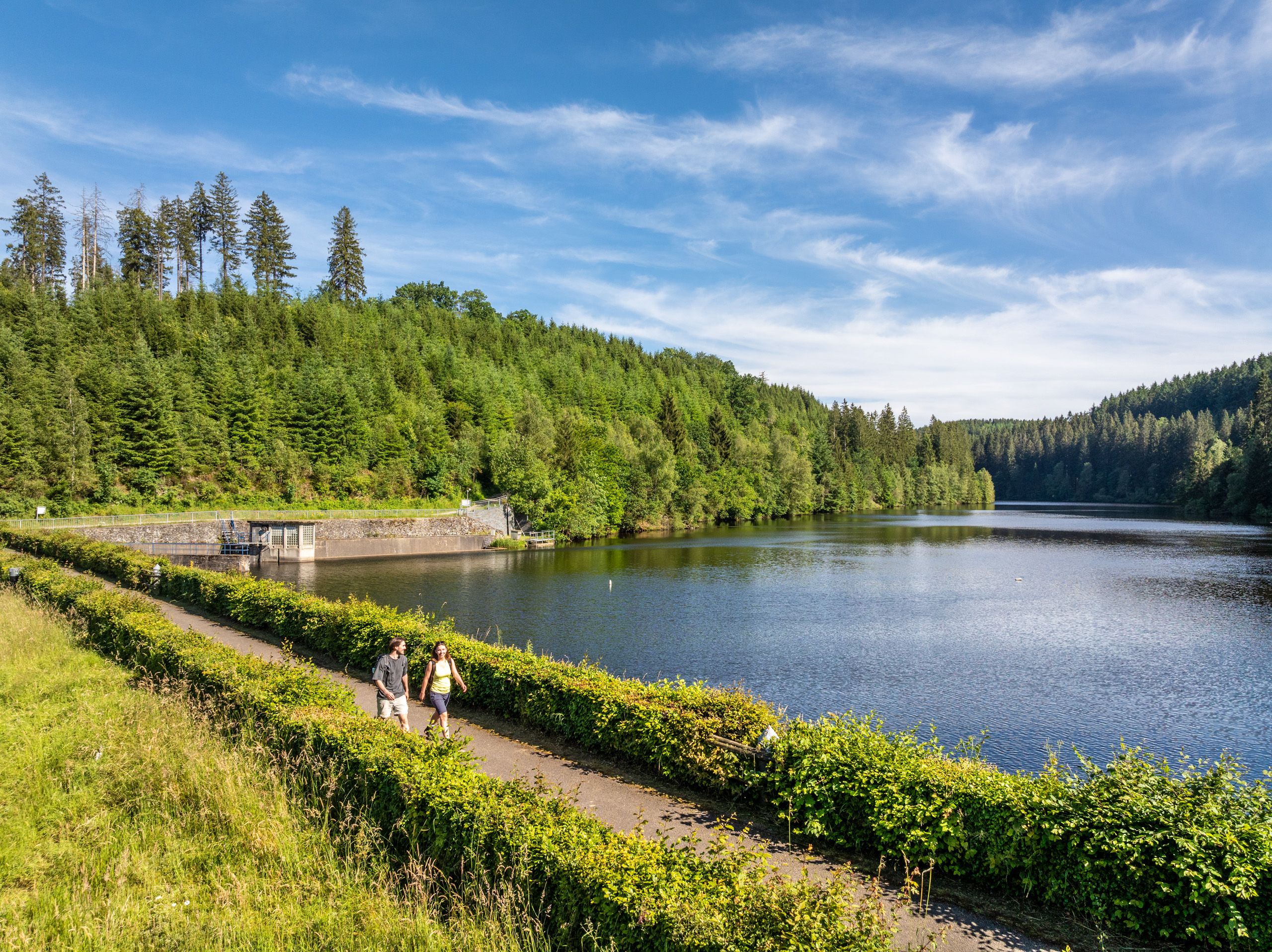 Ce circuit te fait traverser Höfen, le village des célèbres haies de hêtres. Entre les murs verts, de larges vues s'ouvrent régulièrement sur le Monschauer Land. Le sentier longe le moulin abandonné de Perlenbach et le barrage de Perlenbach - des lieux où l'histoire et la nature se confondent.
