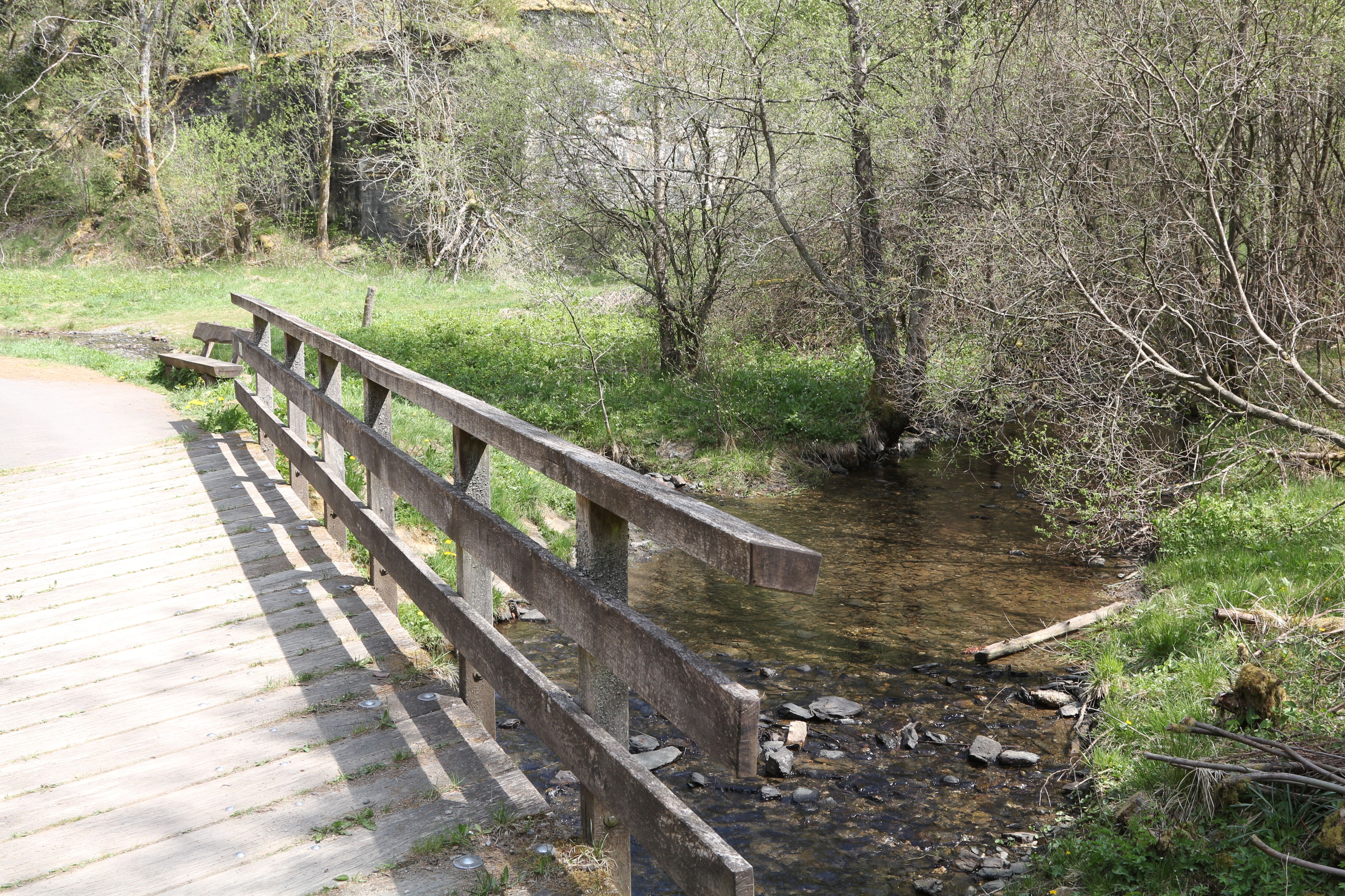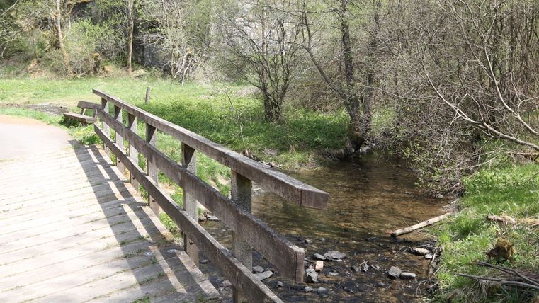 Au pont Antonius, l'itinéraire passe de l'autre côté du ruisseau. Selon notre dépliant de randonnée, que nous avons reçu au Nationalpark-Tor Höfen, un spectacle naturel très particulier attend ici le randonneur au printemps. Des millions de jonquilles en fleurs transforment la pente douce et le fond de la vallée en un tapis de fleurs jaune vif.