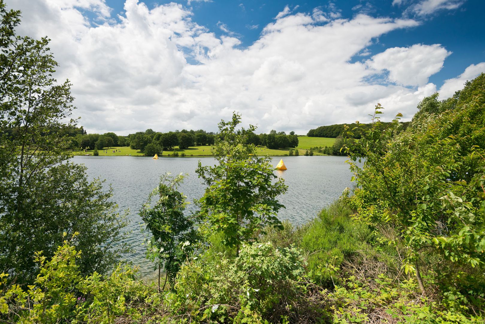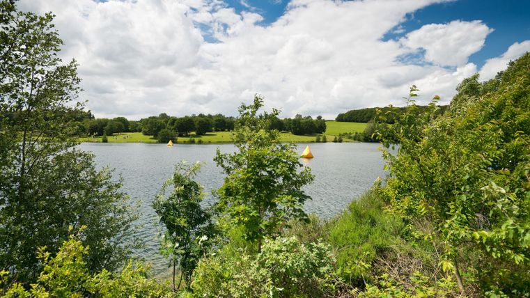 Nous continuons à travers des ruelles sinueuses, le long de l'étang des cygnes, en suivant le cours supérieur de l 'Ahr vers la vallée. Nous atteignons le passage souterrain de la voie ferrée, tournons à droite, puis à gauche après le passage souterrain. Le chemin devient alors plus difficile et nous montons une pente raide. Après avoir franchi un remblai de chemin de fer, la montée est raide. Le parcours débouche peu après sur un sentier forestier qui passe au-dessus de la vallée de l'Ahr à travers un bois de hêtres dense. Avant d'atteindre le haut plateau du Birker Berg, le viaduc d'Oberahreck se trouve un peu à l'écart du parcours. Les efforts de la montée sont récompensés par la vue spectaculaire sur les hauteurs de la Haute Eifel situées au sud. Le chemin nous mène le long de champs de blé, par des sentiers forestiers tranquilles du Bohrsberg, haut de 484 m, jusqu'aux rives du lac de Freilingen. L'espace de détente autour du lac de Freilingen offre de nombreuses possibilités de loisirs. En été, le lac est le refuge des surfeurs et des amateurs de sports nautiques. Le restaurant local vaut la peine de s'y arrêter et de résumer les impressions ressenties jusqu'à présent.