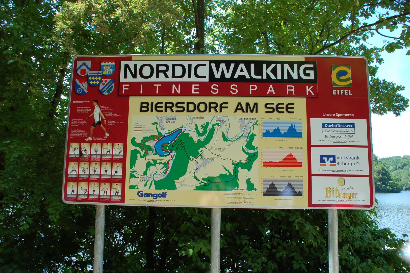 Au point de départ se trouve à chaque fois un grand panneau qui donne un aperçu des parcours et des mouvements de base de la marche nordique.