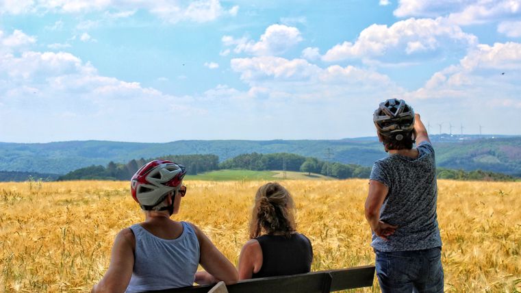 En chemin, tu rencontreras des points de vue charmants. Cela vaut la peine de descendre de la selle de temps en temps et d'apprécier les points forts le long du parcours. Visite le château de Hengebach à Heimbach, qui abrite également l'Académie internationale des arts - ou fais une excursion sur la région des lacs à l'embarcadère de Schwammenauel. Si tu passes devant les imposantes falaises de grès bigarré, un détour par la ville de Nideggen et son magnifique château d'altitude s'impose. Le temps de se ressourcer s'offre le long du fabuleux paysage de la Börde, où la période glaciaire a laissé des sols fertiles et une grande biodiversité.