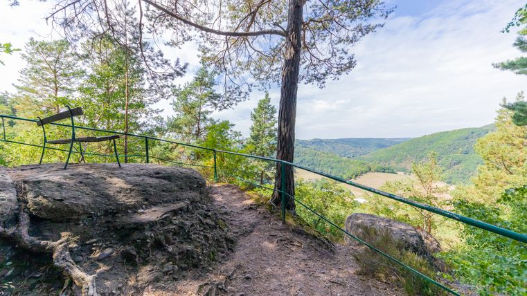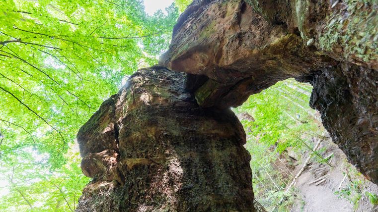 Les falaises de grès bigarré présentent un risque naturel d'éboulement. Veuillez vous tenir à distance des bords de chute et ne pas rester en dessous des parois rocheuses. Respectez les panneaux d'avertissement et les instructions afin d'éviter les accidents et de protéger la nature.