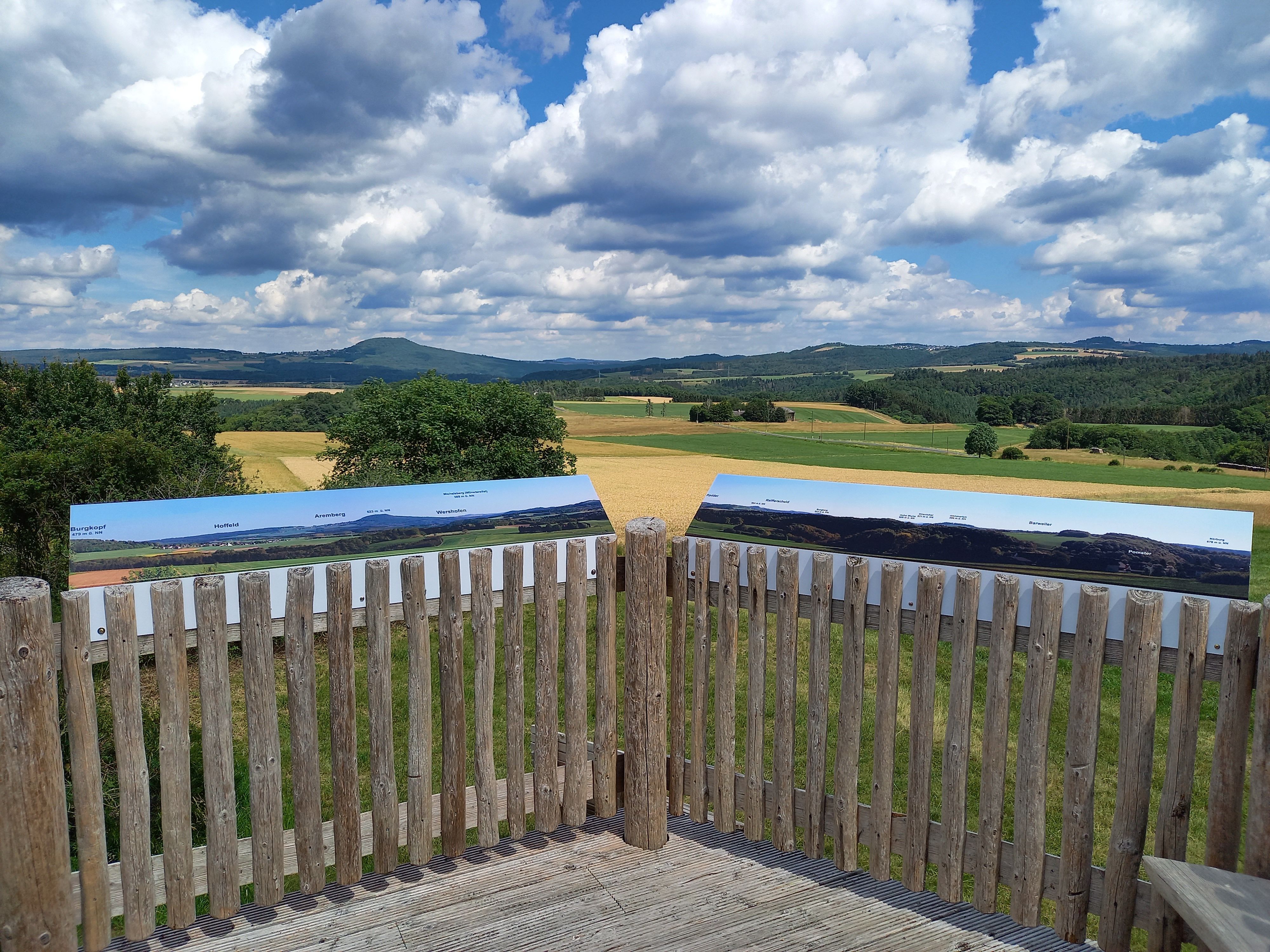 L'église paroissiale de Kirmutscheid, St. Wendelinus, se trouve au point de départ d'un sentier panoramique de 14 kilomètres autour de Pomster et Barweiler. Accompagné par le ruisseau de Trierbach, le chemin mène à travers le petit village de Kirmutscheid, qui ne compte que quelques maisons, dans une forêt de chênes et de charmes. Entouré par le silence naturel, le randonneur est conduit le long d'un chemin forestier en pente douce jusqu'à la plate-forme en bois de la vue panoramique juste avant Pomster. Le magnifique panorama au loin offre à l'observateur une vue magnifique sur le paysage varié de l'Eifel avec le saisissant Aremberg (623 m), 12 villages pittoresques et les ruines du château de Nürburg, autrefois puissant, sur le Mons Nore, la montagne noire (678 m). Un banc vous invite à faire une courte pause. Le parcours circulaire se poursuit à travers le village de Pomster. Vous y trouverez de charmantes maisons en pierre de carrière et à colombages au calme du village, à côté de la petite chapelle historique. A travers la vallée des prés et la forêt mixte, il passe devant des colonies de fourmis pour se retrouver dans la plaine d'inondation naturelle du Wenigbach. La traversée du Wenigbach s'effectue sur des tremplins. Après de fortes pluies, la traversée peut être un peu difficile. Les pieds mouillés sont possibles ! Une fois de plus, le silence naturel est captivant et guide le randonneur plus loin à travers des prairies, des champs et des paysages de haies ouverts, en passant par le Roßbach, doucement jusqu'à Barweiler. Gertrud, avant que le chemin ne traverse une belle avenue et la nature variée de l'Eifel, offrant une vue magnifique sur l'église de Kirmutscheid, et ainsi revenir au point de départ.