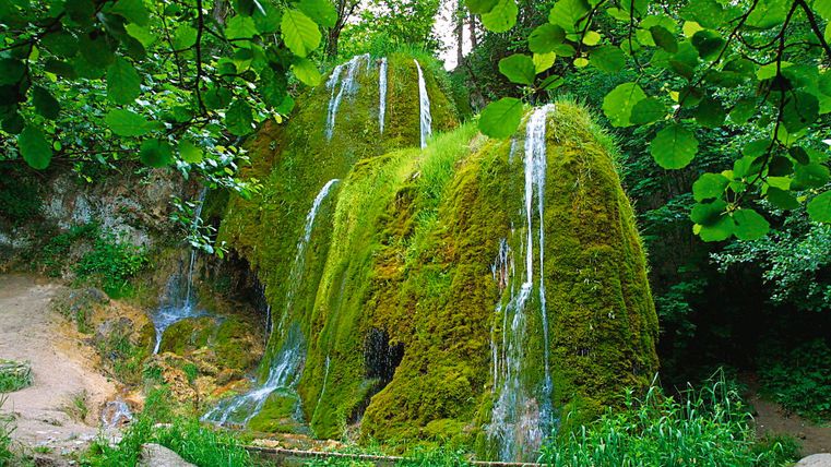 La cascade Dreimühlen est considérée comme l'un des phénomènes naturels les plus spectaculaires de l'Eifel. En raison de la présence d'une mer il y a plus de 300 millions d'années, le sous-sol est aujourd'hui encore très riche en calcaire. Au début du 20e siècle, les ruisseaux de source y ont été réunis afin d'amener un écoulement commun dans la vallée et de permettre la construction du chemin de fer. Les dépôts continuent de s'empiler et une roche calcaire frittée se développe, qui grandit chaque année davantage dans la vallée. L'eau de la source contient beaucoup de calcaire, qui adhère à la mousse et s'y incruste.