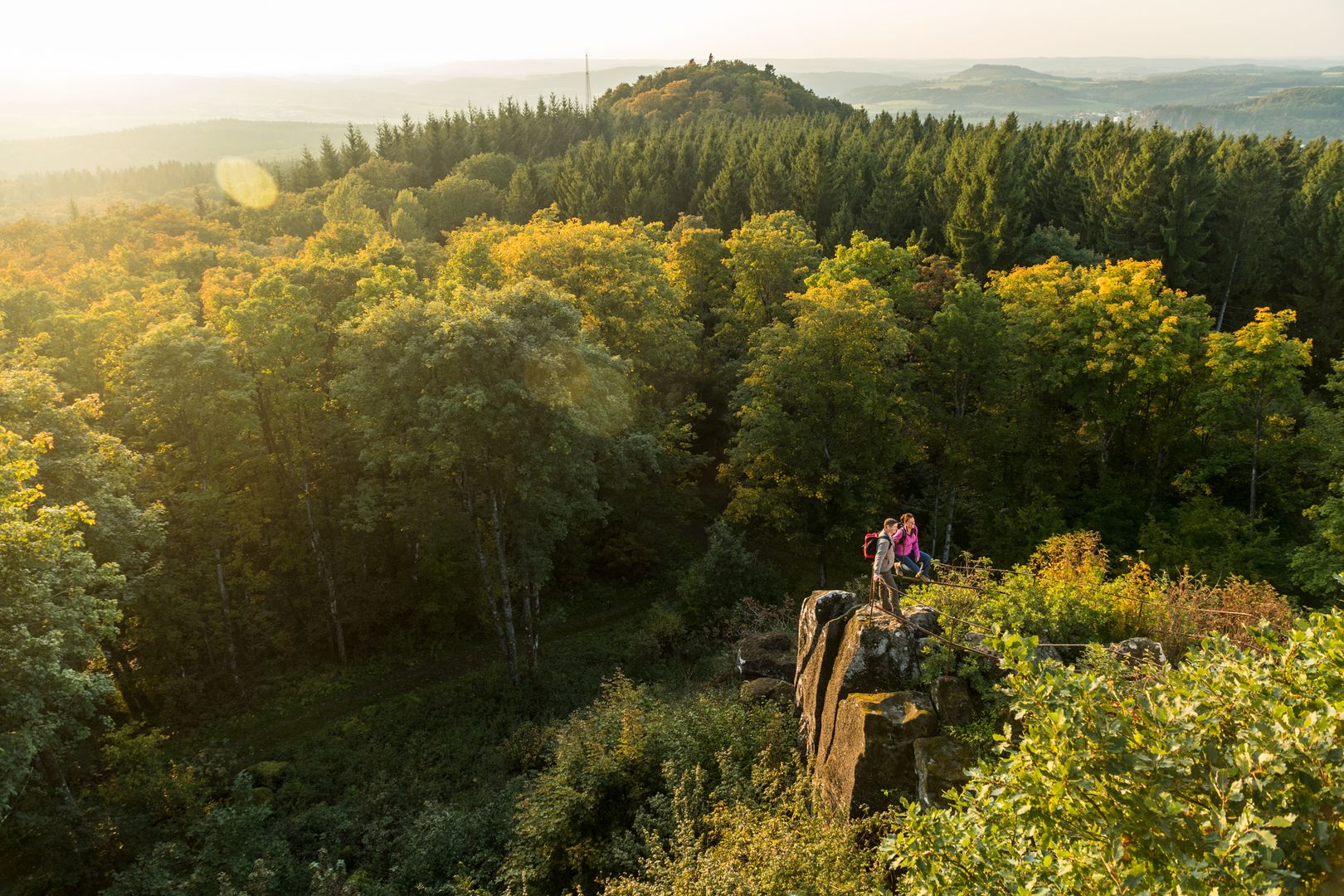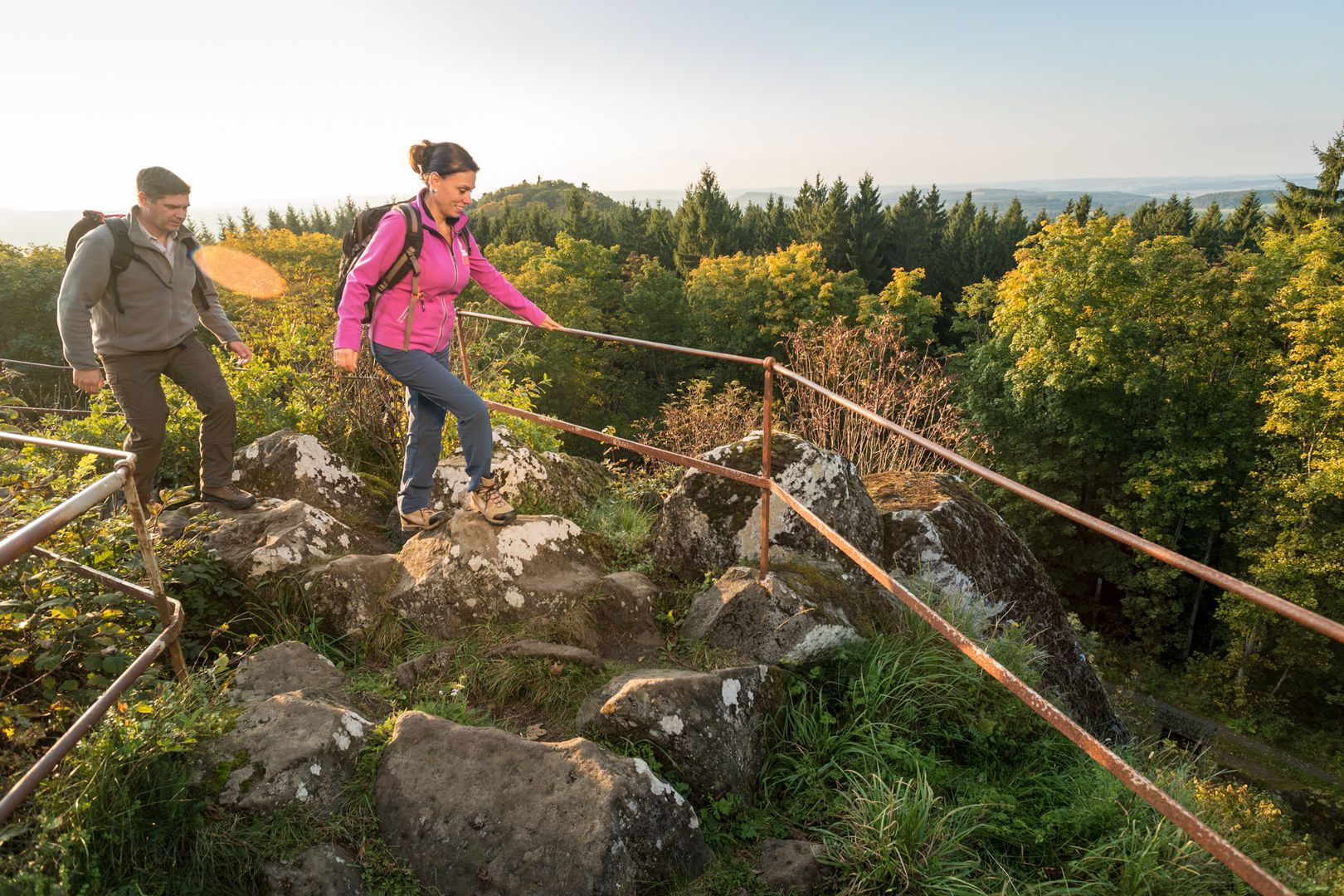 Tandis que la boucle du sentier celte au sud de la petite ville de Gerolstein dans l'Eifel passe par le volcan éteint de Dietzenley et par la réserve naturelle de Heiligenstein, la boucle du sentier des roches au nord de la ville des fontaines traverse les dolomites et mène au château de Kasselburg. Ceux qui n'ont pas peur de combiner les deux sentiers de l'Eifel volcanique et de se promener en une seule journée peuvent profiter d'un itinéraire varié qui offre de magnifiques vues lointaines. Les amateurs d'histoire y trouveront également leur compte, puisque deux murs médiévaux et une grotte se trouvent directement sur le chemin.