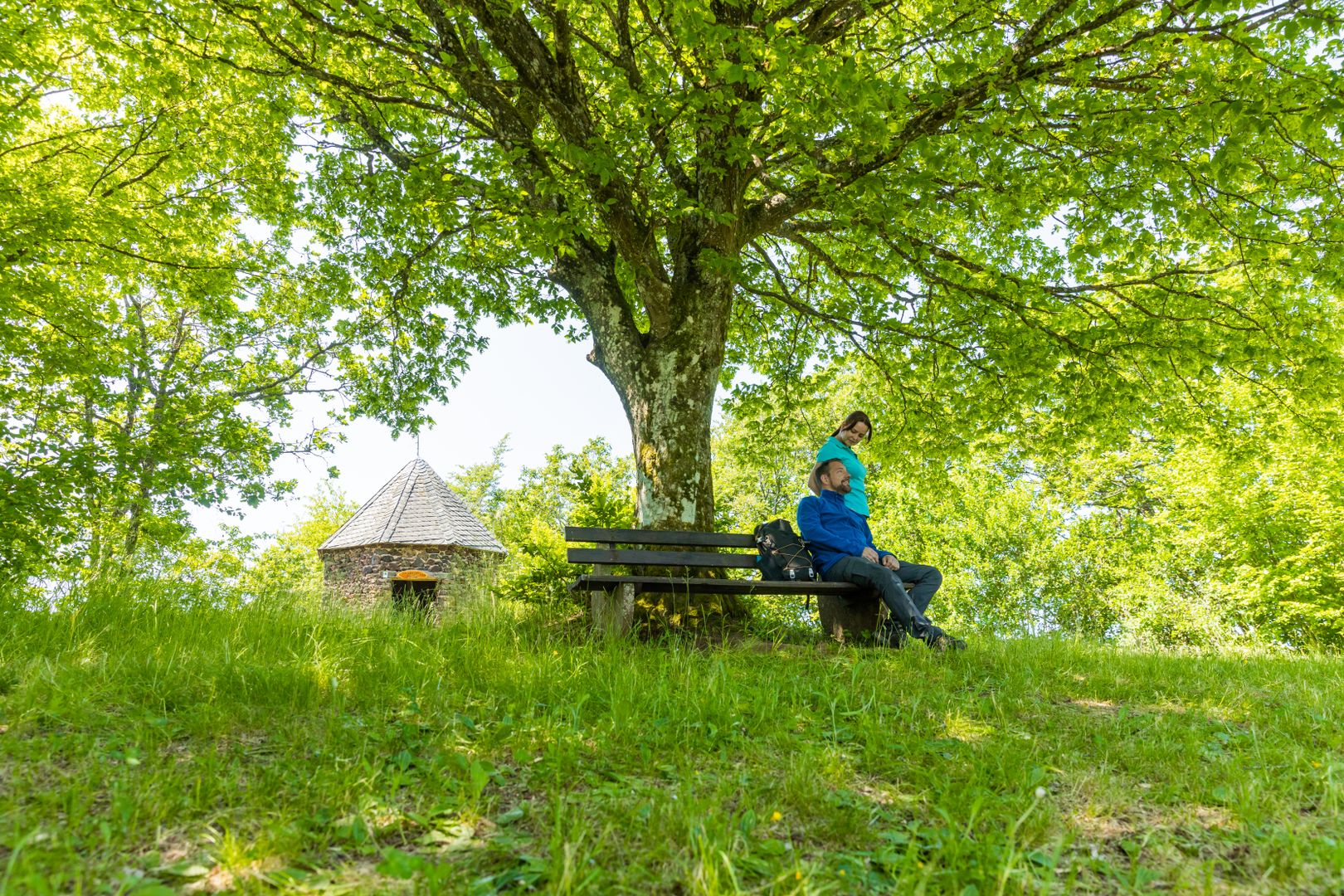 Après la montée, une vue de rêve sur la vallée de l'Üßbach t'attend à l'"Oasis de calme". La source de Maisch est un point fort particulier : non seulement elle témoigne du passé volcanique de la région, mais elle surprend aussi par son rafraîchissement bienfaisant - un véritable réfrigérateur naturel t'attend ici !